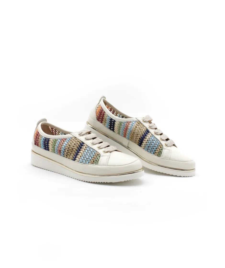 Sublime basket de la célèbre marque italienne XSA. Ce nouveau modèle unique 9702 en couleur dentelle beige ou multicouleur fait déjà son effet auprès des modeuses grâce à son tressage ajouré sur les côtés de la chaussure !