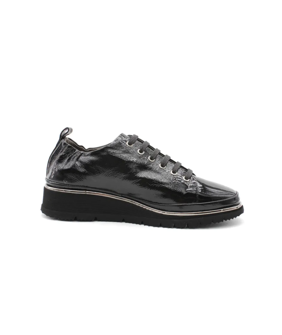 Magnifique basket de la maison Italienne XSA. Aussi élégant que le reste de la gamme, le nouveau modèle 9721 s’équipe d’un cuir haut de gamme couleur vernis beige ou noir, offrant tout de suite beaucoup de souplesse et de bien être. Aussi à l’aise que dans un chausson grâce à sa semelle compensée de 4cm en gomme légère, il n’y a pas de doute, cette chaussure pour femme deviendra rapidement la star de votre shoesing !