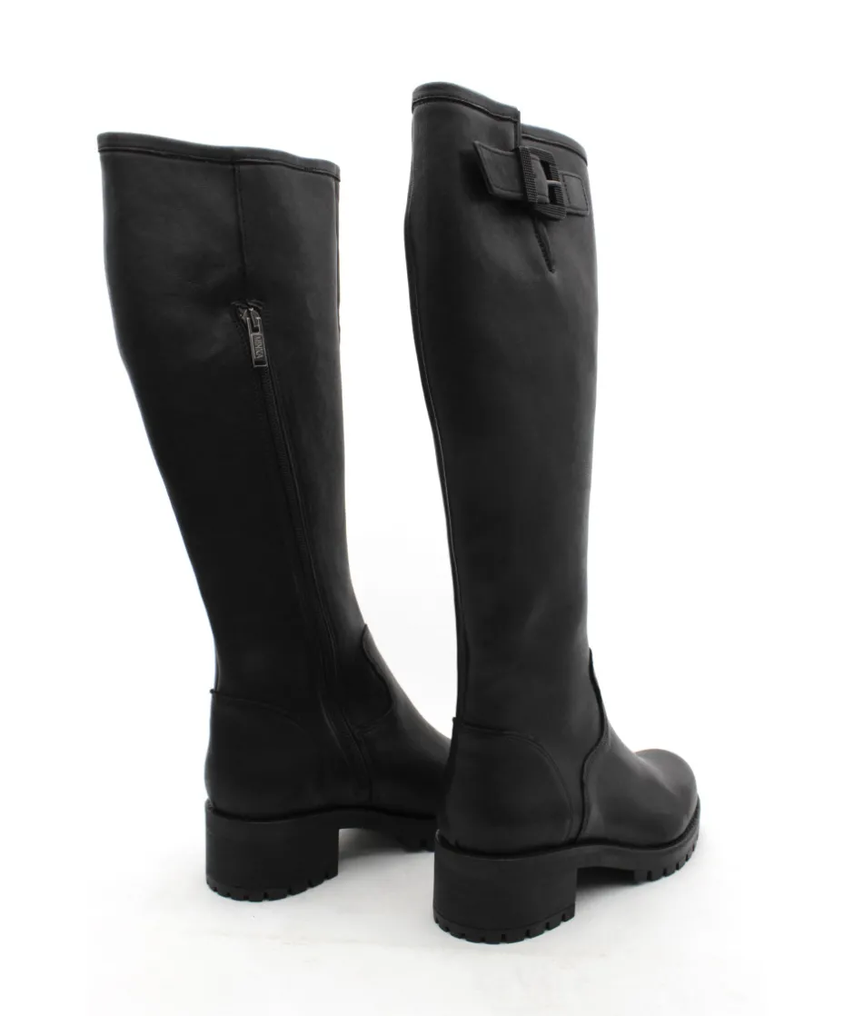 À la recherche d’une jolie botte en cuir noir ? Voici la création originale FATIA de la maison Minka Design avec son cuir haut de gamme, souple et agréable à porter. Sa tige montante s’équipe d’un soufflet derrière sa boucle réglable pour un ajustement optimal à votre mollet tandis que sa semelle en gomme vous assurera un superbe confort de marche et que son zip vous facilitera l’enfilage. Ultra-tendance cette saison, les bottines et leurs semelles épaisses s’adapteront à vos tenues pour un look branché.