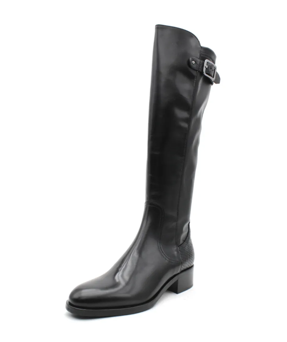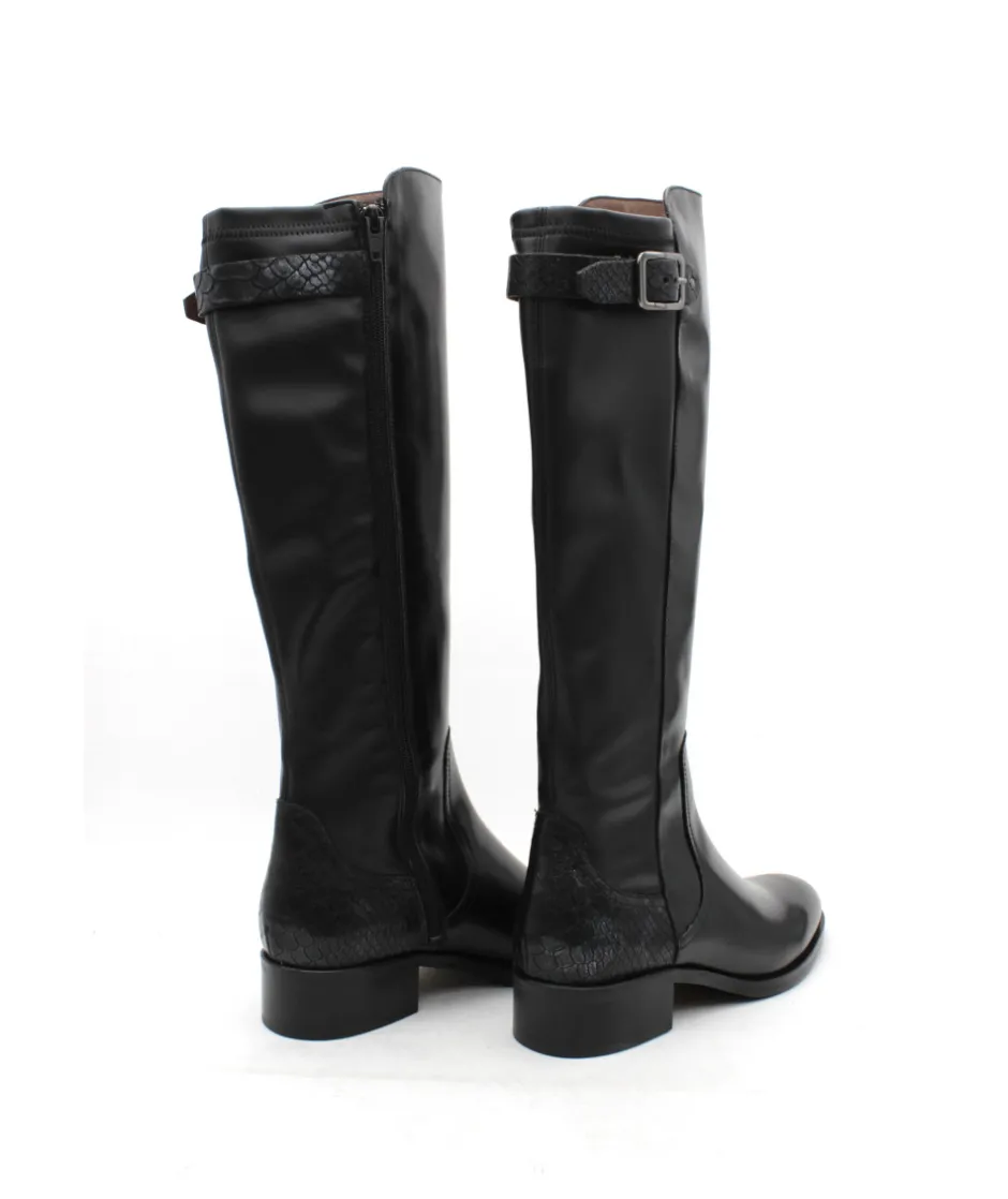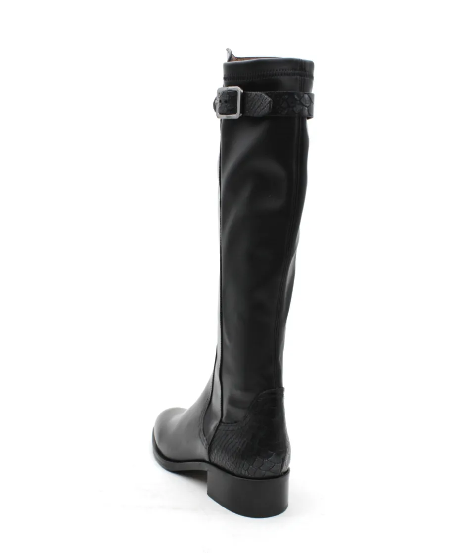 À la recherche d’une botte confortable, élégante et moderne ? Muratti a fait pour vous le modèle parfait : Rochemaure et son cuir lisse noir haut de gamme, mélangé avec des empiècements en cuir croco pour une touche d’originalité. Son galbe parfait épousera votre mollet tandis que son zip intérieur vous facilitera l’enfilage. Montée sur un talon de 4 cm, cette botte vous suivra toute la journée et s’adaptera facilement à votre garde robe. Pas de doute, c’est elle qui manque à votre shoesing cet hiver.