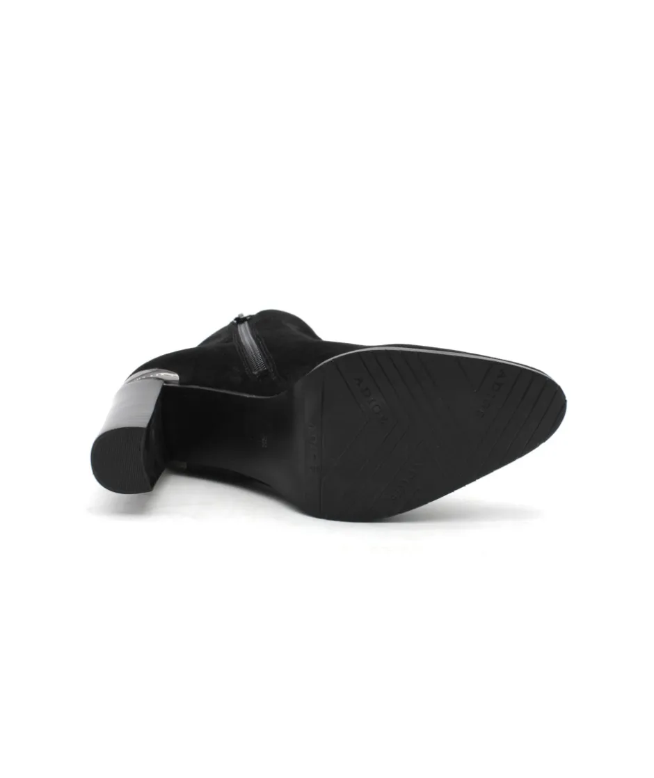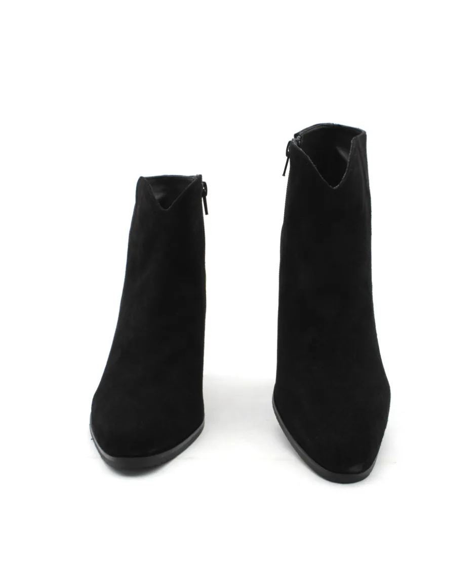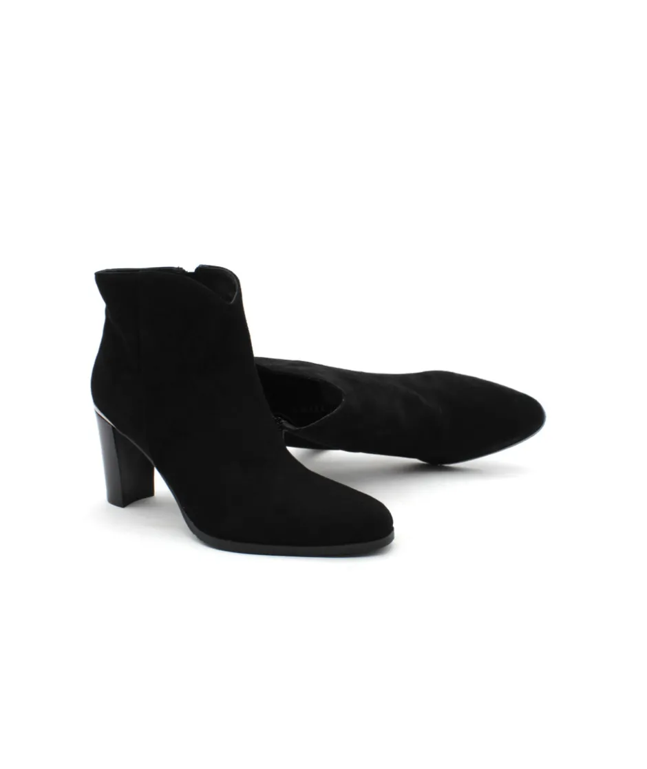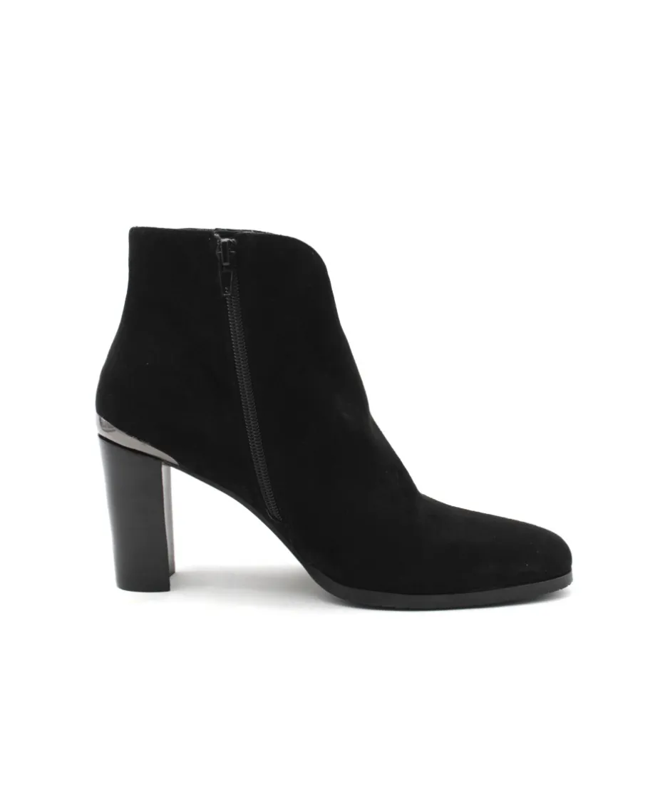 Sobriété et élégance, deux qualificatifs que la bottine VERO 104 n’a pas volé pour séduire les modeuses. Le galbe parfait de sa tige décoltée sur l’avant, son insert argenté à l’arrière et son talon de 7 cm pour affirmer votre féminité. Légère et confortable, cette chaussure ne vous quittera plus des pieds… À porter avec un jeans, une robe, une jupe ainsi qu’avec de nombreuses couleurs, cette boots en cuir velours noir s’accorde à de nombreuses tenues.