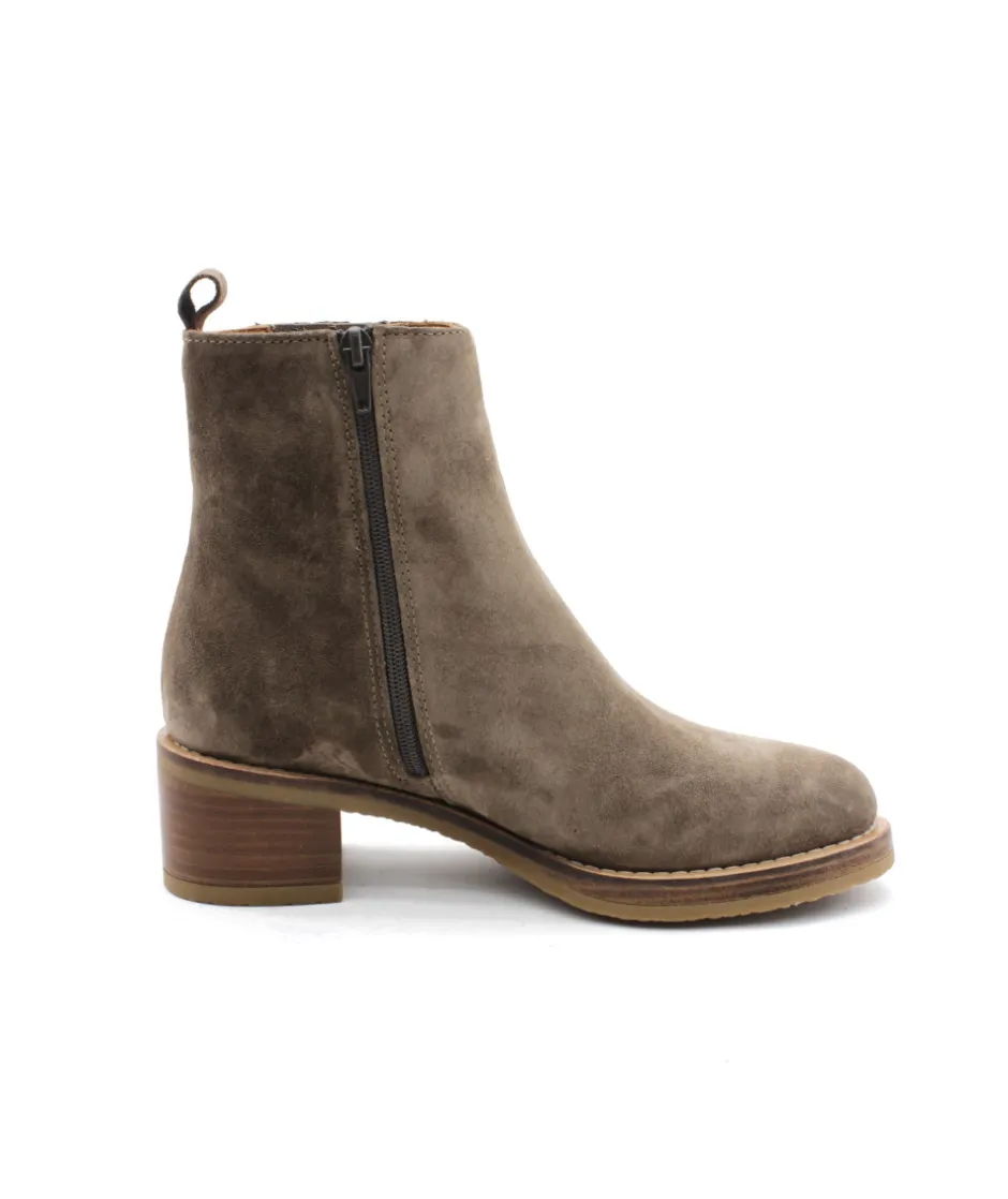 À la recherche d’une boots originale et tendance ? Voici la création 2617-37 en cuir velours taupe de la marque espagnole ALPE. Chic et élégante avec son talon décroché de 5 cm, cette paire de chaussure vous fera prendre de la hauteur en conservant du confort et une cambrure raisonnable grâce à son plateau avant de 2 cm. Son cuir souple s’emboite parfaitement au pied tandis que ses élastiques et son zip intérieur vous faciliteront l’enfilage.