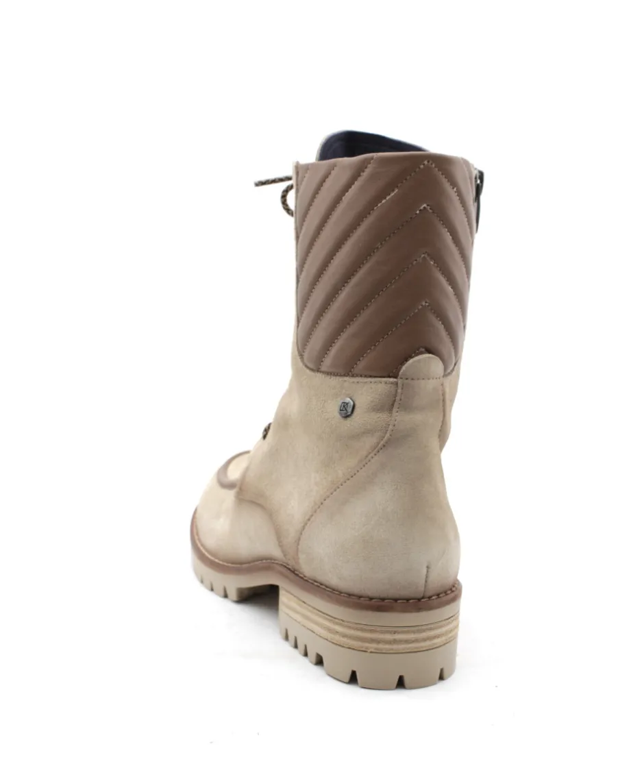 Dorking revient cette saison avec la forme WALKING. La bottine D8834 s’habille d’un superbe cuir velours beige et d’un talon de 4 cm. Moderne et originale avec son bourrelet marron et sa tige matelassée en cuir marron, la marque espagnole confirme son savoir faire en fabriquant des chaussures pour femme moderne et confortable. On aime sa semelle en gomme crantée et son talon qui offre un confort de marche accrue.