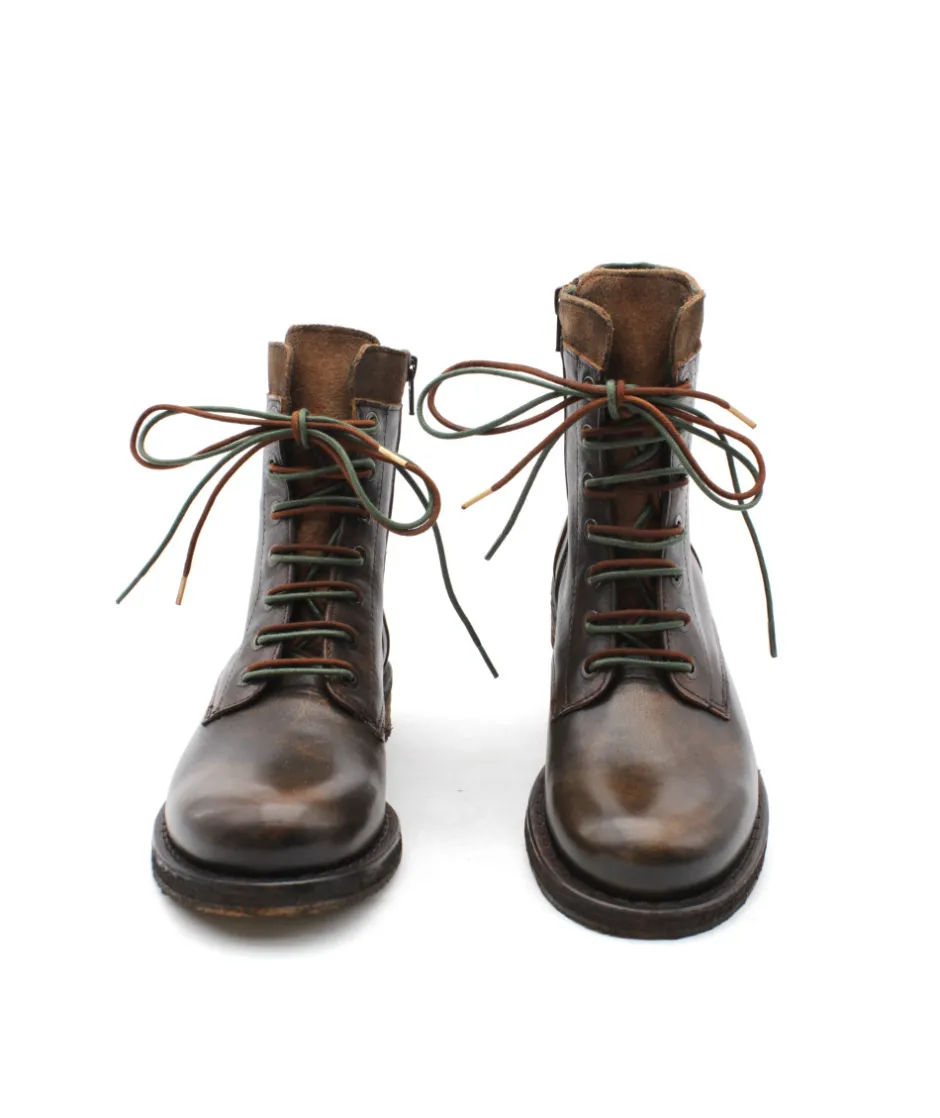 Le modèle D175 de la maison Felmini fait son apparition cette saison avec son cuir couleur marron cognac. Un look rangers vintage, accompagné d’un double lacet vert et orange original, le tout assit sur un petit talon qui permet d’obtenir un produit mode et confort. Réglable avec son lacet, souple avec sa semelle en gomme flexible, c’est la bottine à tout faire par excellence ! Le petit plus ? Le zip intérieur rajouté pour la praticité.