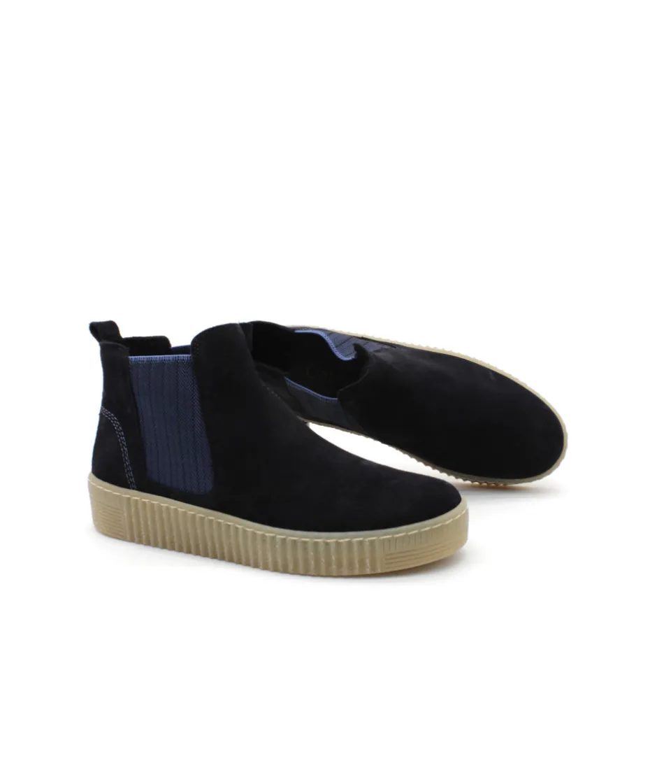 Bottine type Chelsea résolument moderne: elle est dotée du Best Fitting Gabor : plus de largeur sur l’avant pied pour plus de confort et dispose également d’une première amovible. Un dessus en velours bleu marine et une doublure micro pour votre confort intérieur, elle dispose également d’une semelle de marche Gomme légère au look actuel…Bref : un Must Have Gabor, absolument !