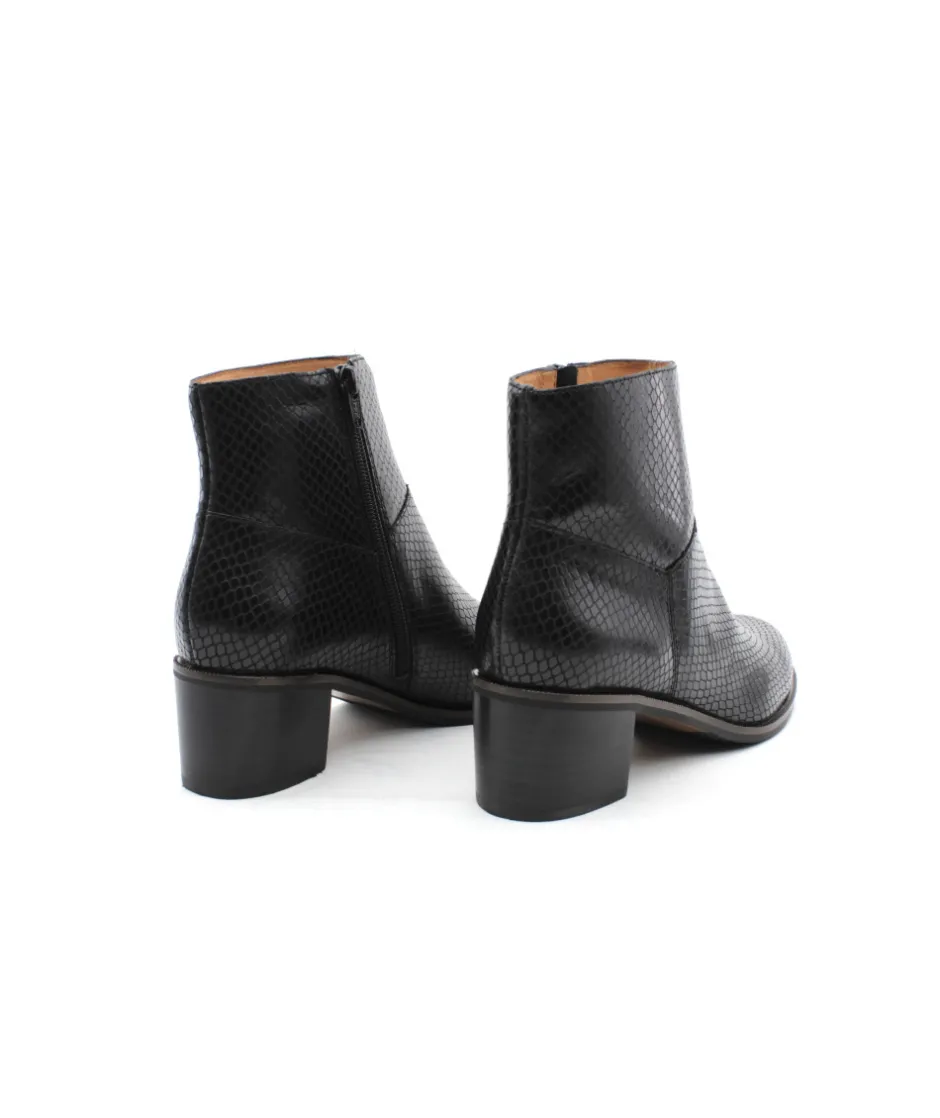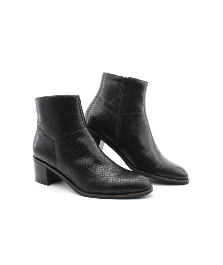À la recherche d’une jolie bottine pour l’hiver ? Voici la nouvelle indispensable de chez Mamzelle TALION en cuir Noir et Tan marron. Un cuir écaille de serpent original qui offre un look moderne tandis que son zip sur le côté facilitera l’enfilage. Légère, souple et pratique, cette boots se classe directement dans nos coups de coeur à porter à chaque occasion.