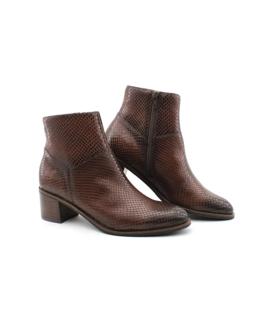 À la recherche d’une jolie bottine pour l’hiver ? Voici la nouvelle indispensable de chez Mamzelle TALION en cuir Noir et Tan marron. Un cuir écaille de serpent original qui offre un look moderne tandis que son zip sur le côté facilitera l’enfilage. Légère, souple et pratique, cette boots se classe directement dans nos coups de coeur à porter à chaque occasion.
