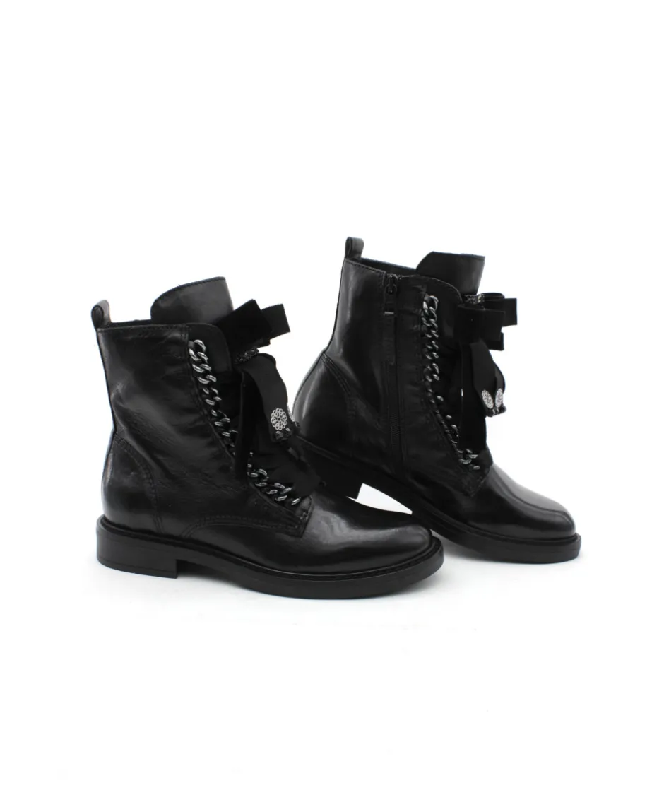 Immanquable de la collection, Mjus revient cette saison avec cette jolie bottine pour femme en cuir noir. Le modèle T81204 s’équipe d’une semelle en gomme pour un confort accru, d’un lacet plat ultra original avec des passants argentés, d’un noeud papillon féminin ainsi que d’un zip intérieur pour plus de praticité lors de l’enfilage ! Rien de mieux pour affronter l’hiver et garder les pieds au chaud. On aime l’élégance et l’originalité de ce modèle que vous pourrez associer à chacune de vos tenues.