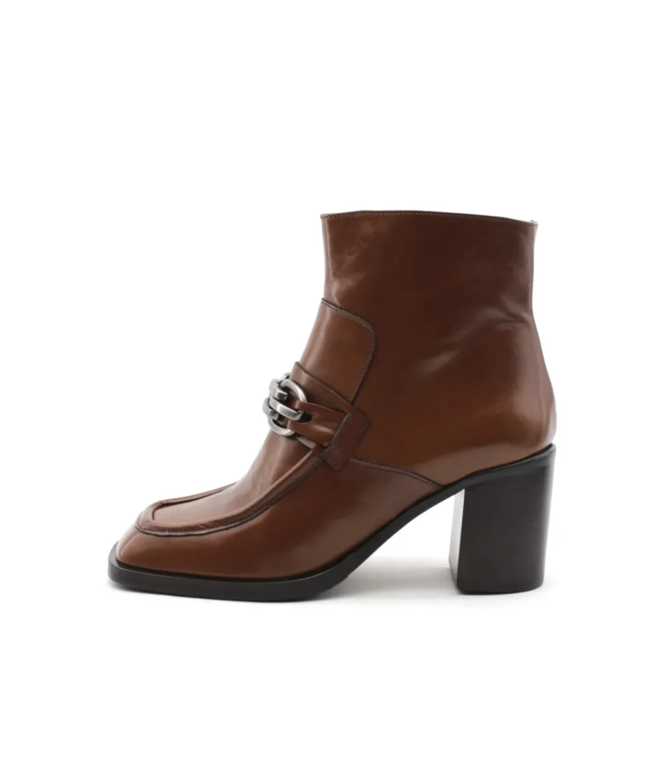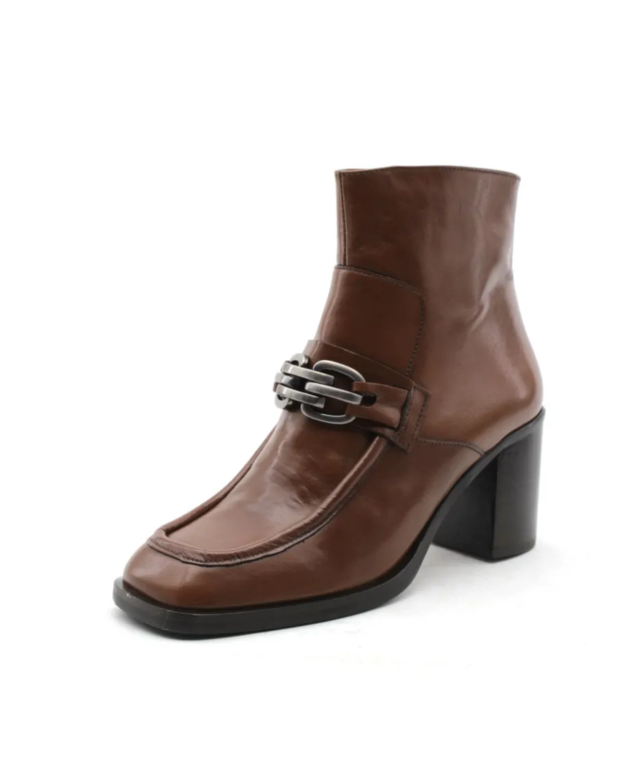 Complètement décalée, cette bottine pour femme à la recherche de modernité et d’originalité, est le must have de la collection Muratti. RABATEL S1214A en cuir marron n’a pas finir de vous surprendre avec son bijou décoratif, son plateau jointé bourrelet et son look décalé… Son talon de 7 cm vous offrira la cambrure parfaite tandis que son zip vous facilitera l’enfilage. N’attendez-plus pour profiter de cette boots !