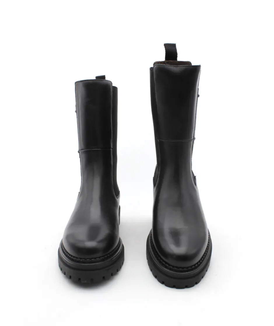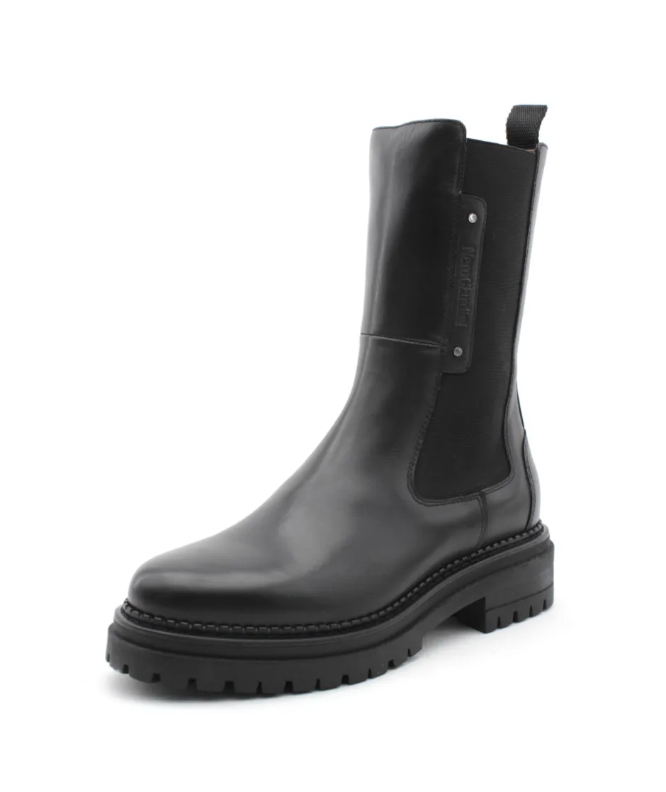 Magnifique bikers pour femme en cuir noir. Voici la dernière création de la maison italienne Nerogiardini avec sa boots I308950D. Une création toute en élégance, à l’image du savoir faire italien. Perchée sur un talon de 4,5 cm, cette bottine s’équipe d’une tige élastiquée et de son logo frappé. Facile à enfiler, vous pourrez les porter tous les jours avec chacune de vos tenues… Robes, Jeans et jupes ne seront pas en reste avec cette chaussure tendance et féminine.