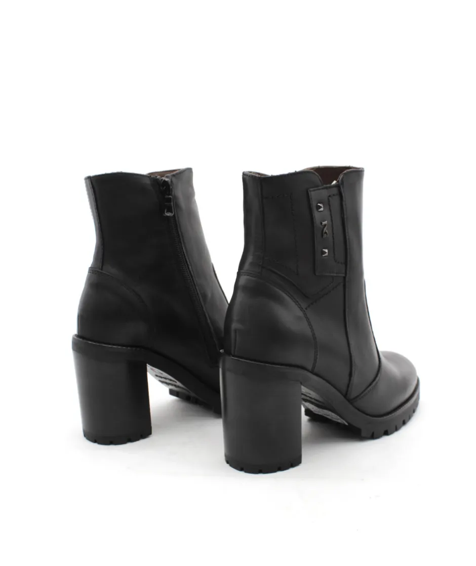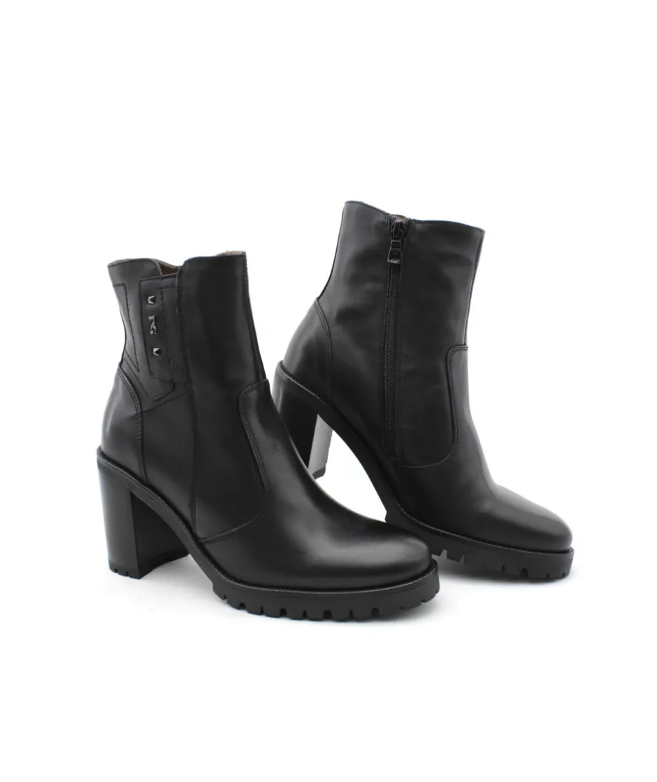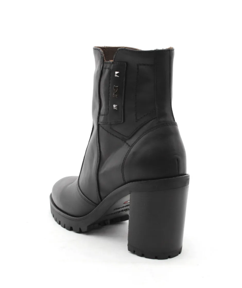Magnifique bottine pour femme en cuir lisse noir ou cuero. Voici la dernière création de la maison italienne Nerogiardini avec I308981D. Une création toute en élégance, à l’image du savoir faire italien. Perchée sur un talon de 8,5 cm, cette bottine s’équipe d’un zip intérieur et d’un joli jeu d’empiècements en cuir. Facile à enfiler grâce à son zip, vous pourrez les porter tous les jours avec chacune de vos tenues… Robes, Jeans et jupes ne seront pas en reste avec cette chaussure tendance et féminine.