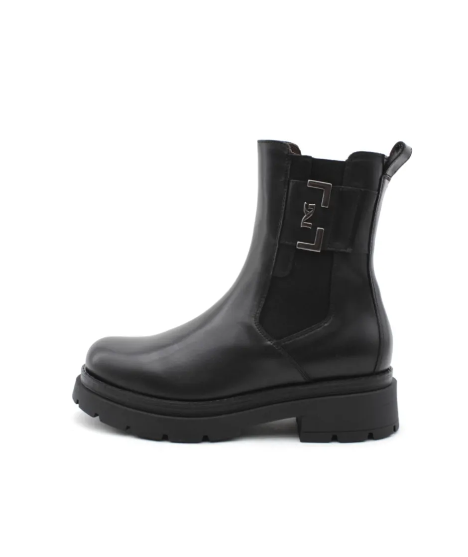 Magnifique boots pour femme en cuir lisse noir. Voici la dernière création de la maison italienne Nerogiardini avec sa bottine I309150D. Une création toute en élégance, à l’image du savoir faire italien. Perchée sur un talon de 4,5 cm, cette bottine s’équipe d’un zip intérieur pour la praticité et d’une boucle décorative sur la tige élastiquée. Facile à enfiler grâce à son zip, vous pourrez les porter tous les jours avec chacune de vos tenues… Robes, Jeans et jupes ne seront pas en reste avec cette chaussure tendance et féminine.