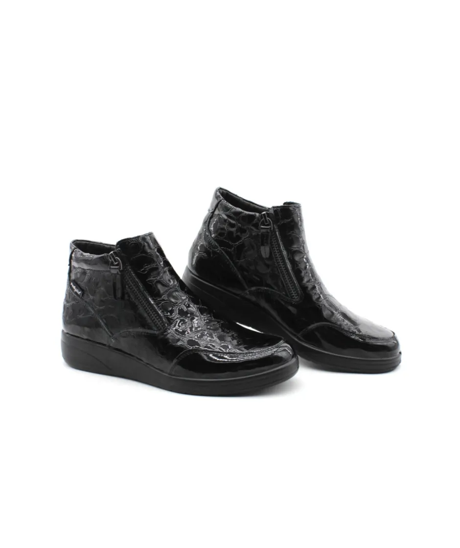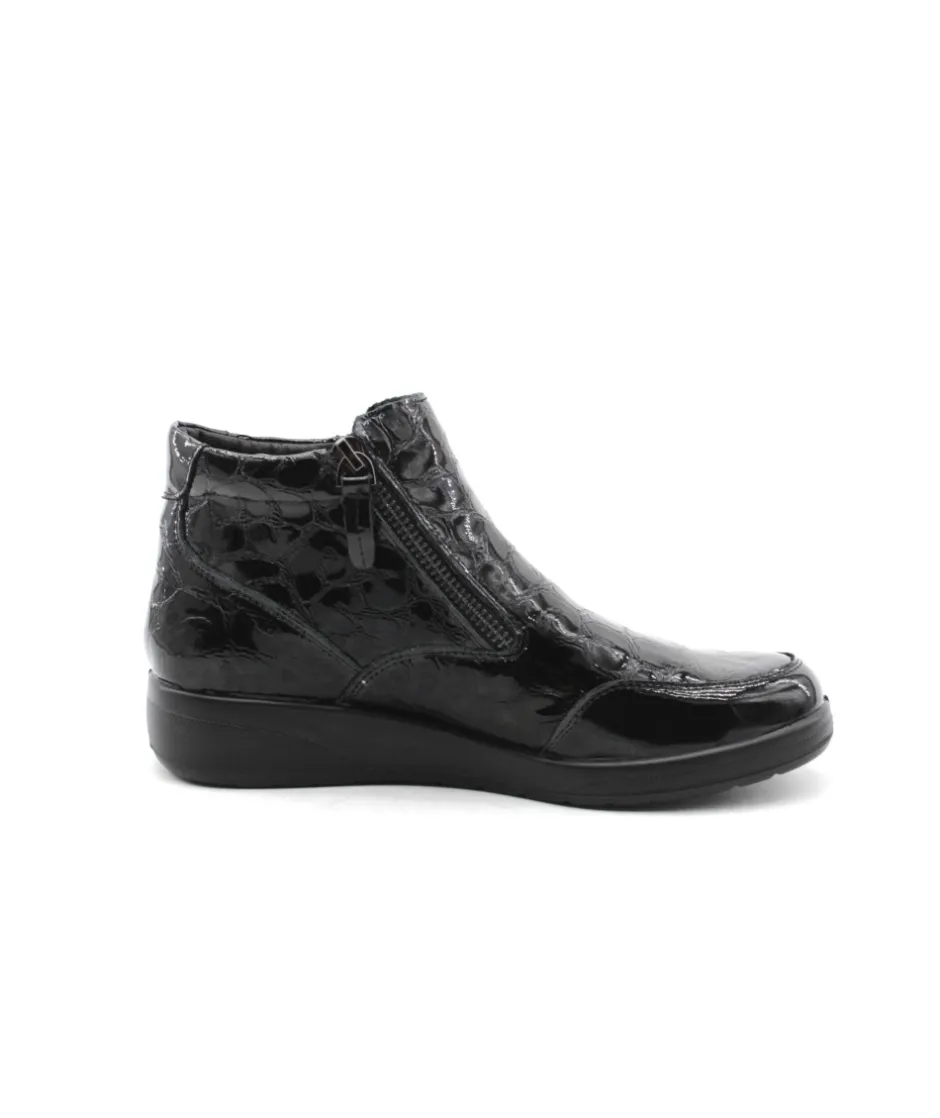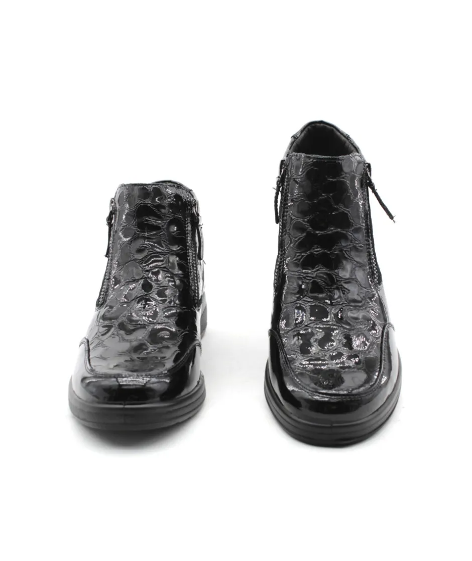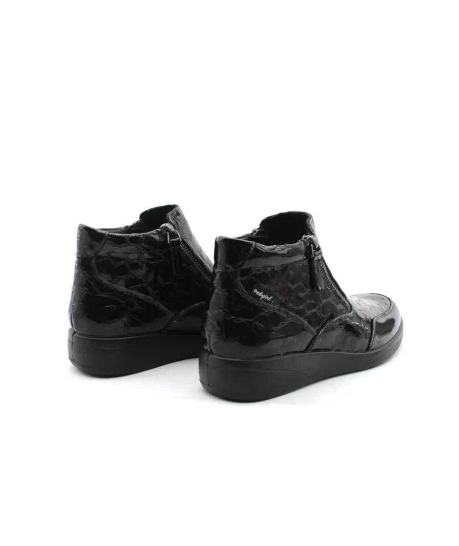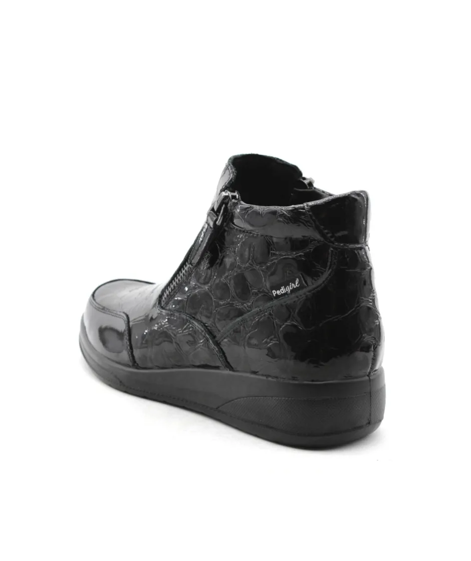 Modèle immanquable de Pedi girl, Suzy Amo en cuir vernis noir, doté de deux fermetures glissières sur chacun des côtés de votre paire, la facilité à mettre votre chaussure est garantit ! Vous pouvez également changer la semelle afin d’y mettre la vôtre au besoin. Un modèle tout en cuir dont vous n’arriverez plus à vous passer ! N’attendez plus et laissez-vous tenter…