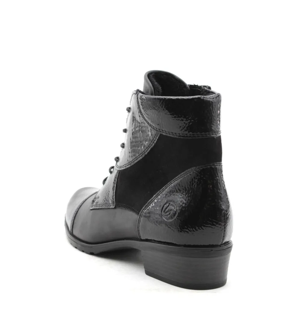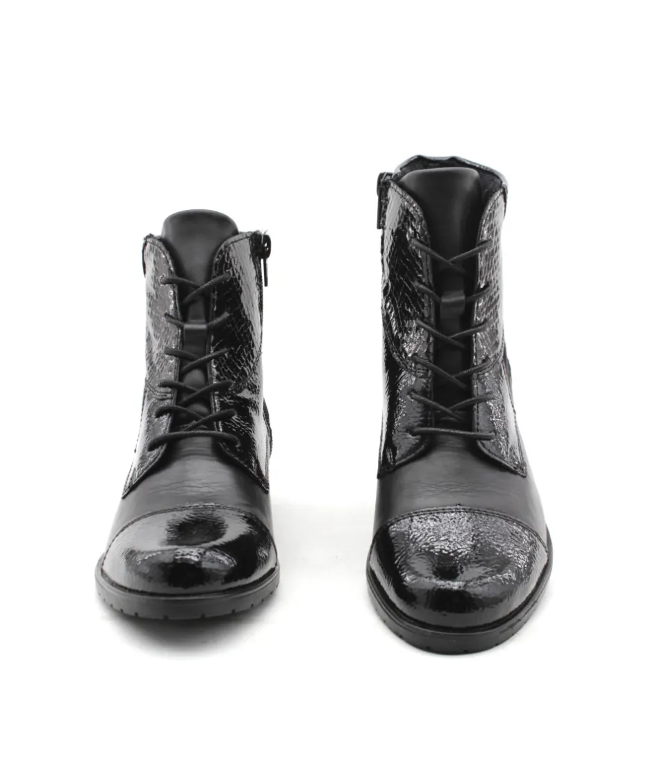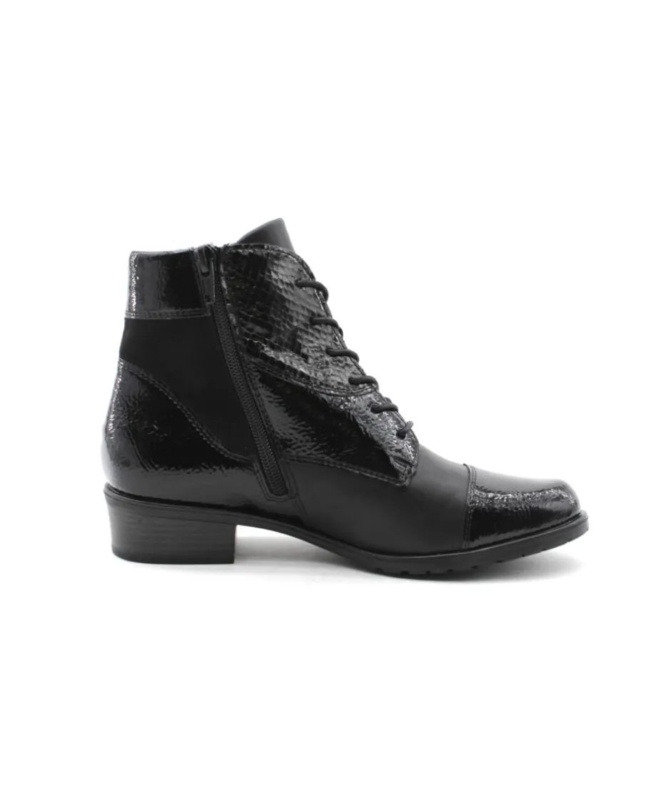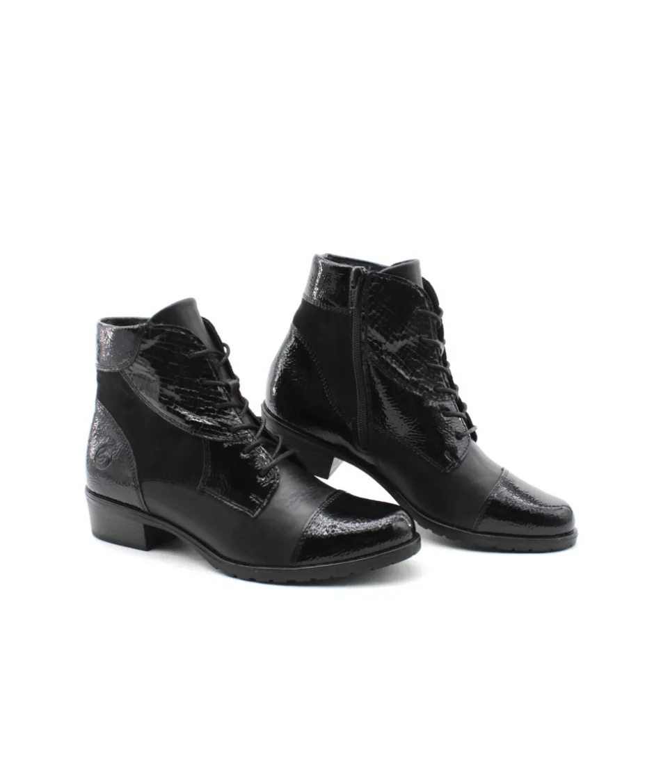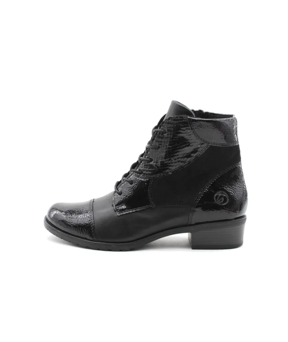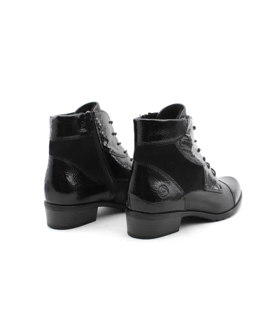 Cette paire de bottine en Cuir noir D6882-01 de la maison Remonte vous assurera un confort optimal tout au long de la journée. Ce modèle sera votre meilleur allié pour adopter un style à la fois tendance et confortable tout en profitant de la praticité d’enfilage du zip associé au lacet. Bonus : La bottines s’équipe de la technologie Remonte Soft : Matières respirantes, super amorti de la semelle et résistant à l’humidité.