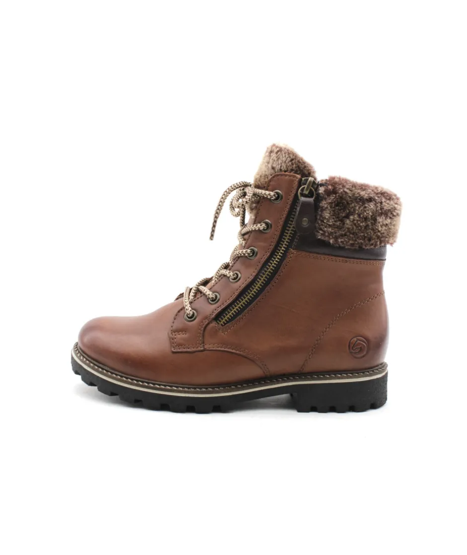 Remonte D8463-25 est une bottine femme en cuir et textile marron. Cette bottine Remonte est facile à chausser grâce à sa fermeture éclair et son lacet. Cette bottine Remonte est doté d’une semelle amovible et d’une tige en fourrure, parfaite pour accompagner vos tenues d’hiver.