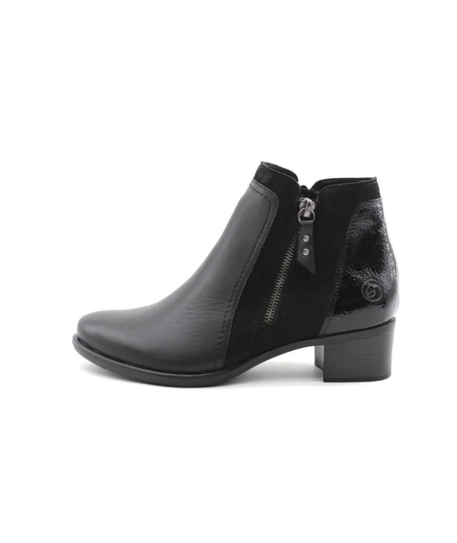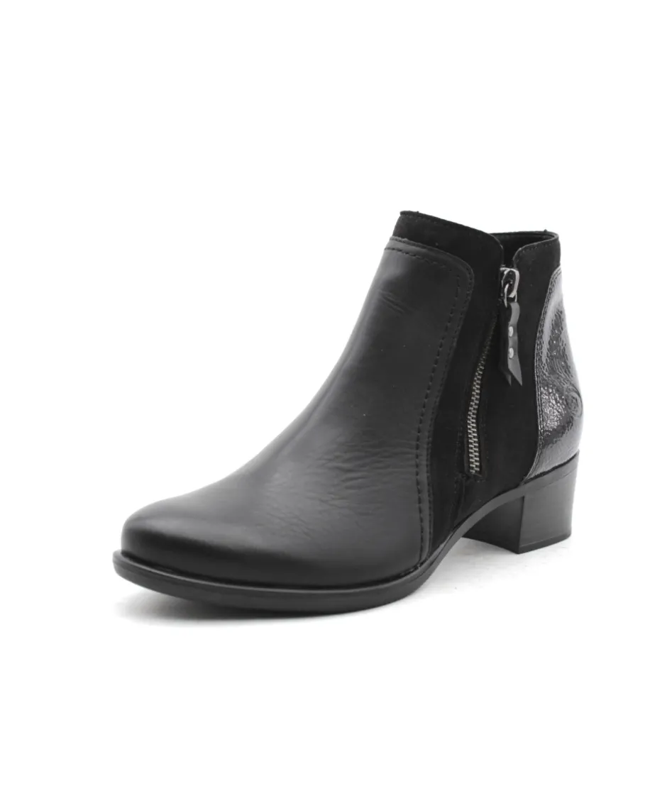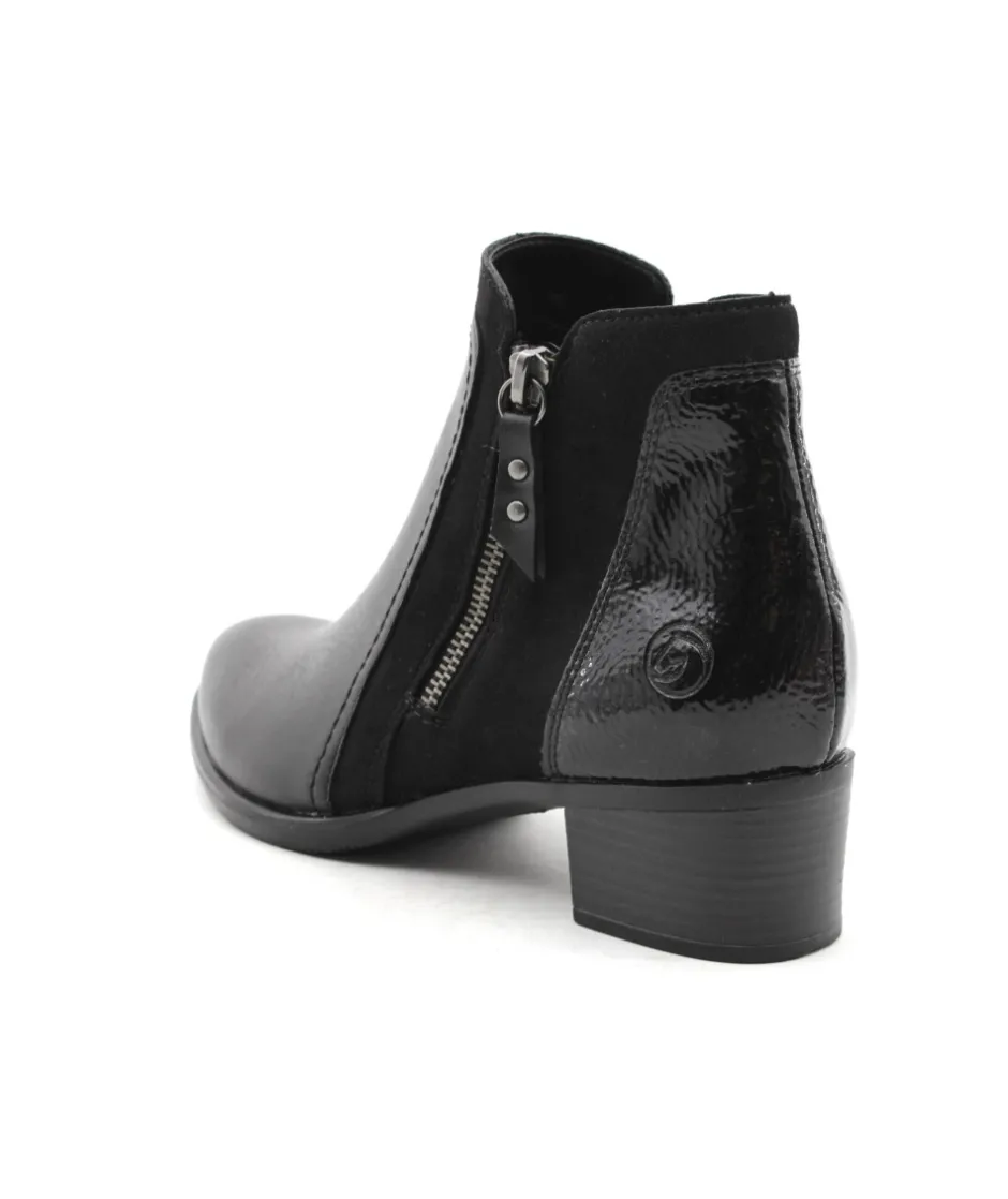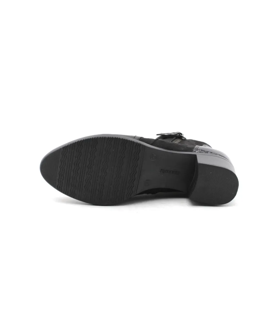 Remonte R5172-03 est une bottine femme en cuir et textile noir. Cette bottine Remonte est facile à chausser grâce à sa fermeture éclair. Cette bottine Remonte est doté d’une semelle amovible et d’un talon détaché. Parfaite pour accompagner vos tenues d’hiver. Elle embarque avec elle la technologie Remonte Soft : matières respirantes, semelle qui amorti les chocs, résiste à l’humidité….