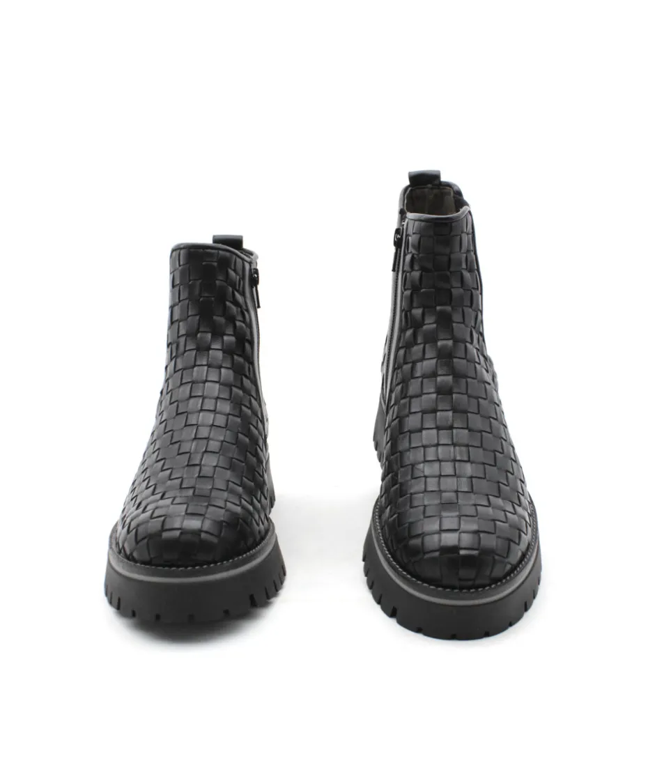 Softwaves vous présente sa dernière création, une magnifique bottine 8.36.33/00 VEGA en cuir tressé noir. Montée sur une semelle en gomme qui offre un superbe amorti, ces boots s’emparent de toutes les dernières tendances avec un cuir tressé que seul les meilleurs artisans sont capables de faire. Un zip intérieur apporte quant-à lui beaucoup de praticité lors de l’enfilage.