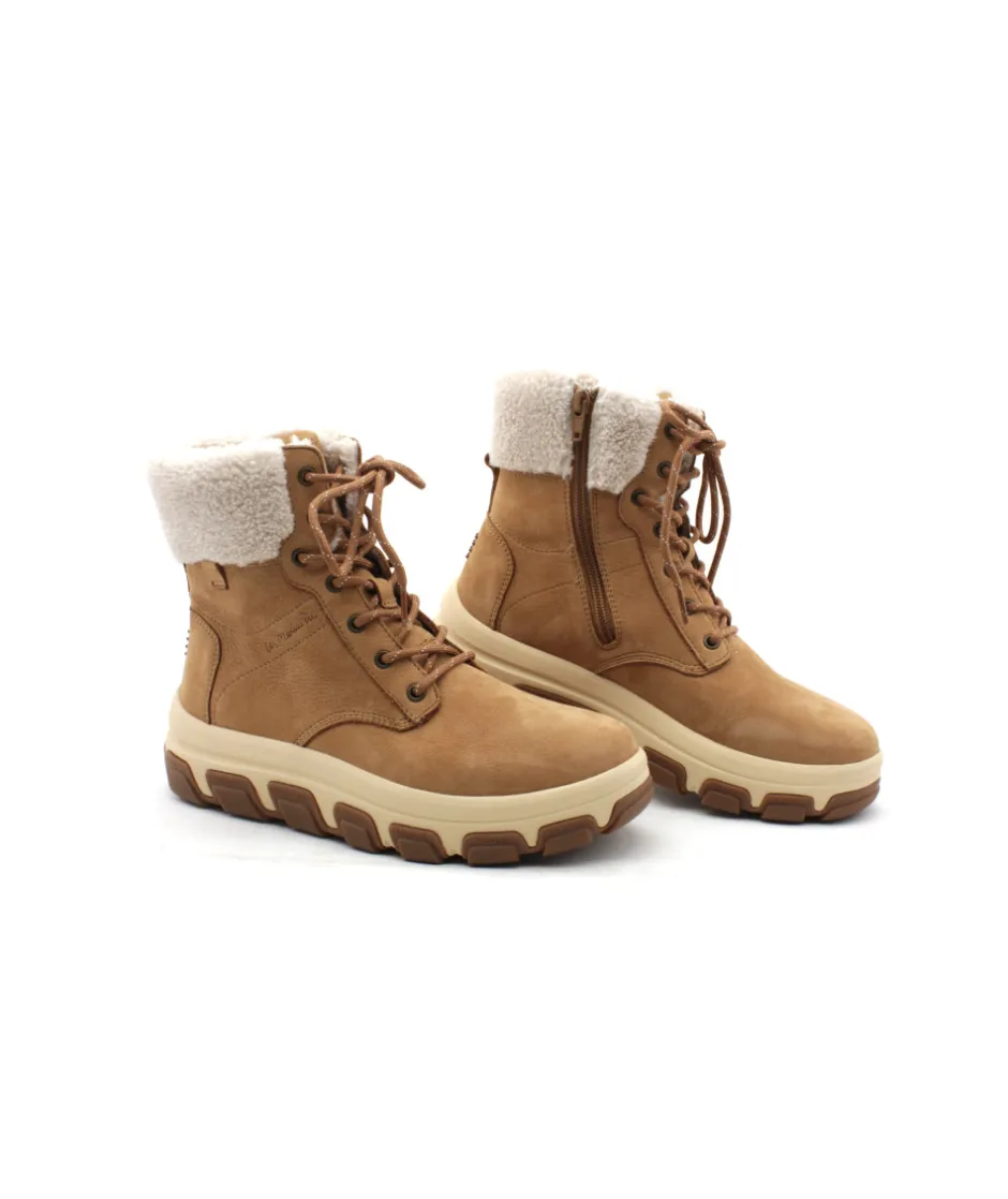 Equipez-vous contre le froid cet hiver avec la boots MELISSA en cuir velours camel à la semelle plus épaisse & crantée garantissant une meilleure isolation et adhérence sur les sols humides. Le cuir et la semelle en EVA et caoutchouc garantissent souplesse et légèreté à ce boots. Son col fourré (avec 30% de polyester recyclé) vous apporte douceur et chaleur jusqu’au desssus de la cheville. Explorez et partez à l’aventure sans crainte grâce à sa semelle adhérente avec des crampons de 3mm et un caoutchouc résoluement solide et durable. Cette boots vous suivra des années! Et enfin, ce modèle participe à la protection de l’environnement en utilisant des cuirs issus de tanneries plus vertueuses, certifiées Leather Working Group.