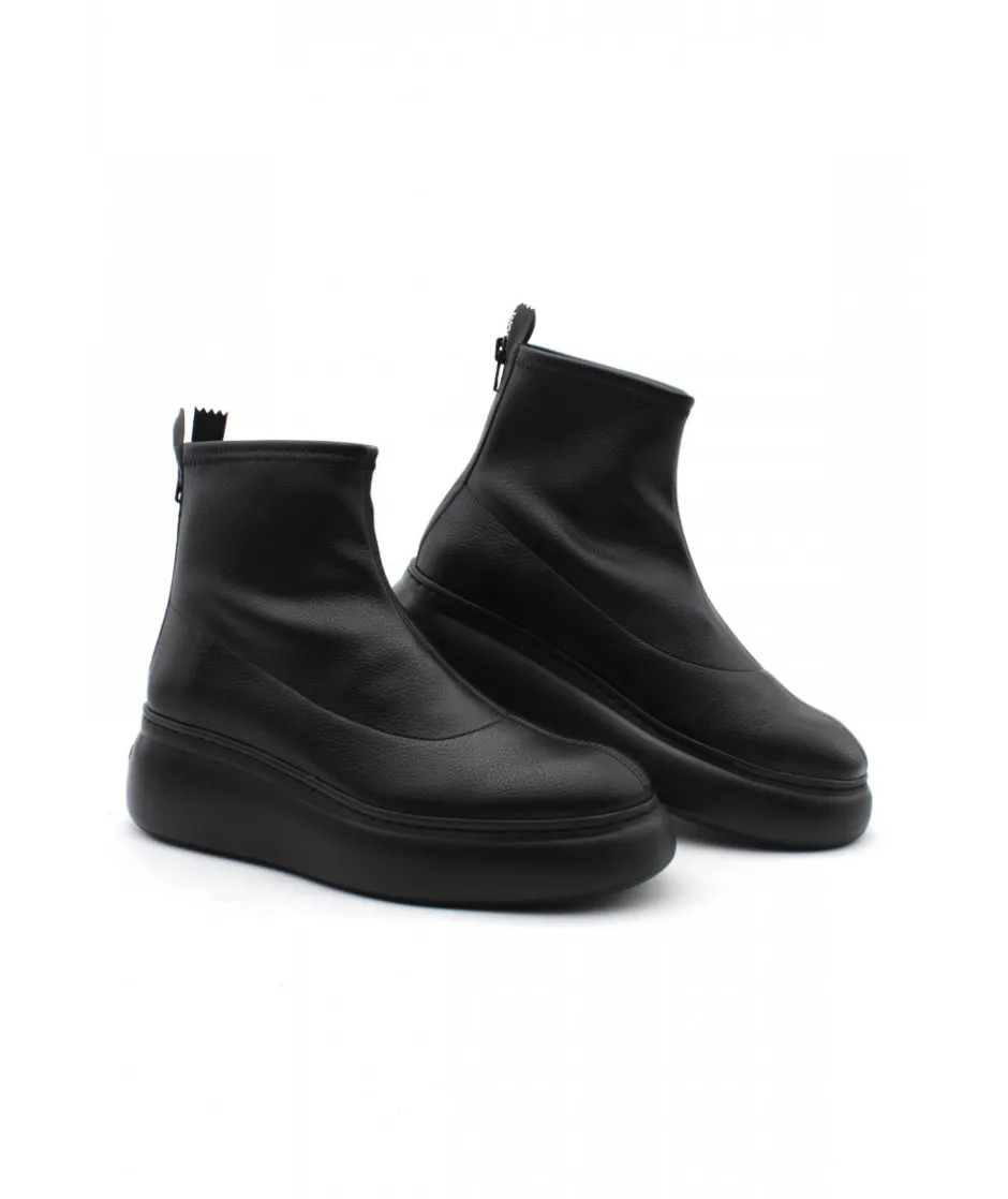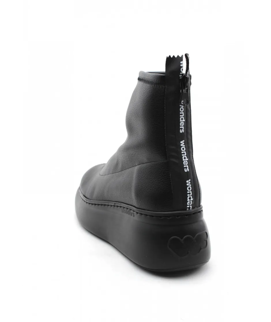 Magnifique bottine compensée dessinée par la maison espagnole WONDERS, voici la A2622 en cuir noir. On aime son look ultra-atypique grâce à son zip intégré dans la languette sur le contrefort et sa semelle compensée de 5 cm, pas de doute… vous êtes sur de ne pas passer inaperçu ! Légère, confortable et souple, vous ne pourrez plus vous en passer, alors n’hésitez pas une seule seconde !