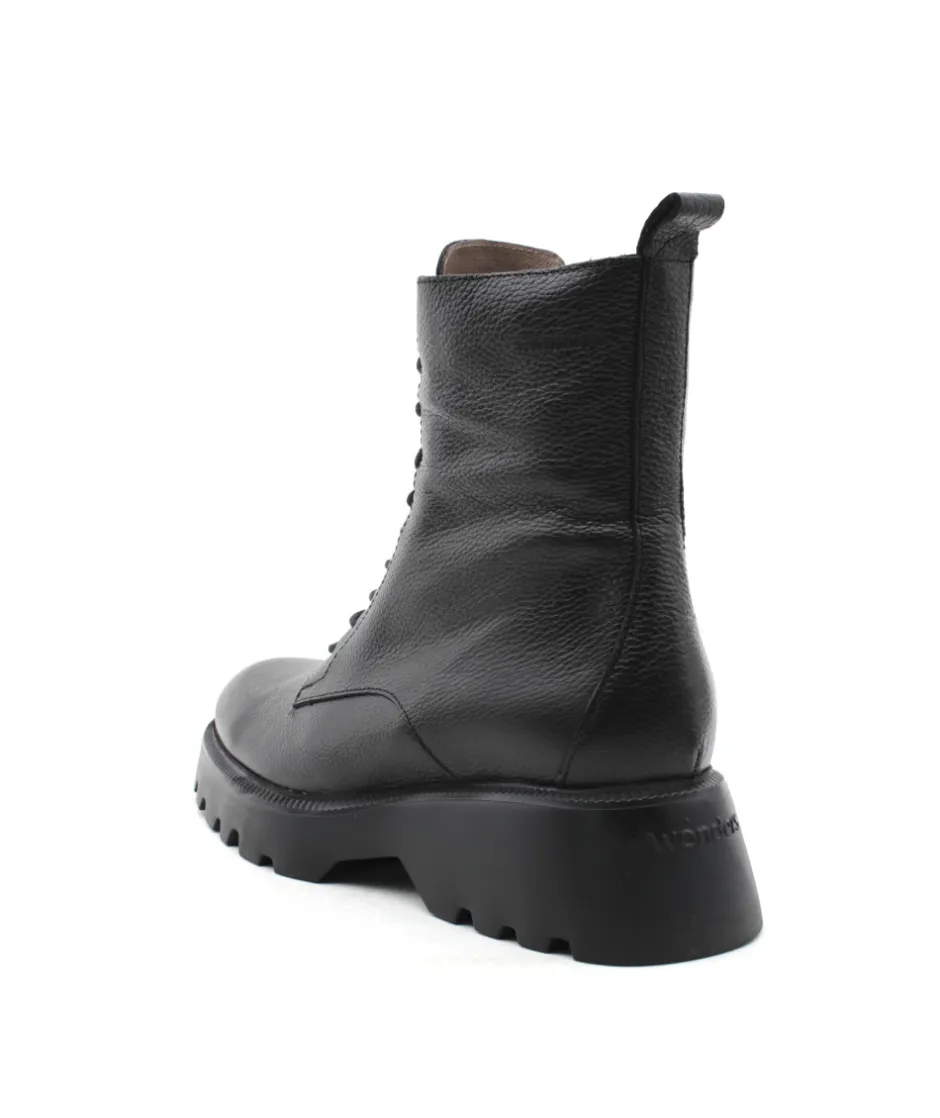 À la recherche d’une jolie bottine en cuir noir ? Voici la nouvelle création Wonders C7205 au look ravageur et tendance ! Avec sa tige souple et ses lacets, ces chaussures pour femme ne manqueront pas d’originalité… Sa semelle débordante au look atypique opte pour une couleur identique au reste de la chaussure, ce qui se mariera parfaitement avec chacune de vos tenues. Alors n’attendez plus !