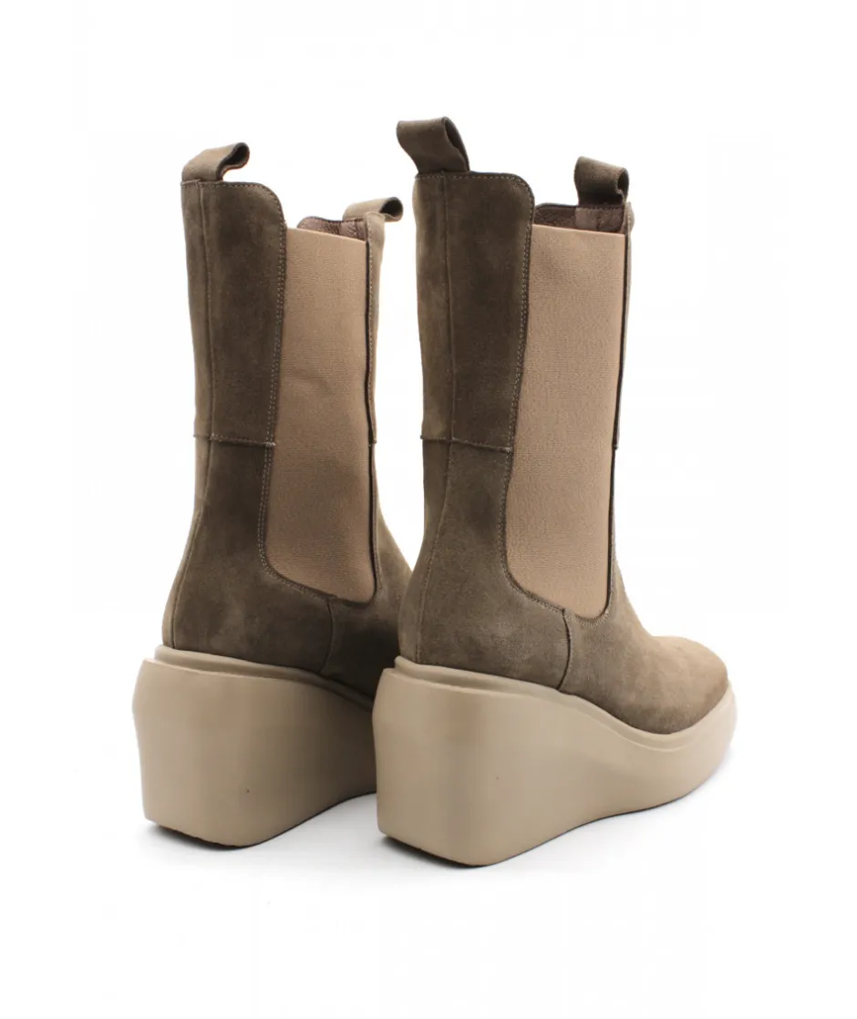 À la recherche d’une jolie bottine en cuir velours taupe ? Voici la nouvelle boots Wonders H5302 au look ravageur et tendance ! Avec sa tige haute et ses élastiques, ces chaussures pour femme ne manqueront pas d’élégance… La couleur beige de son talon compensé en rappel à ses élastiques, se mariera parfaitement avec chacune de vos tenues. Alors n’attendez plus !
