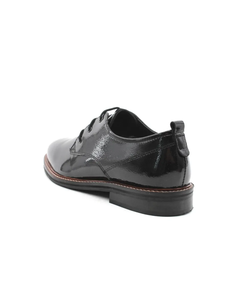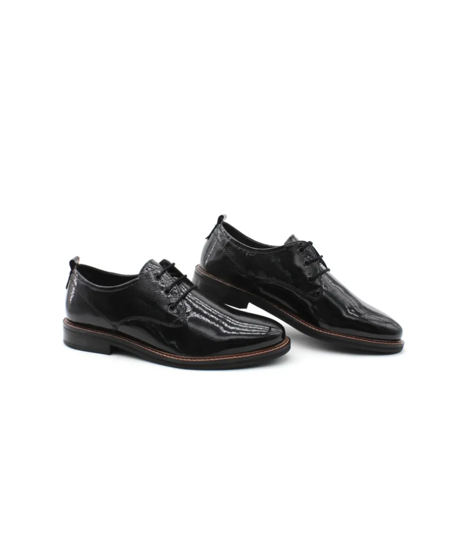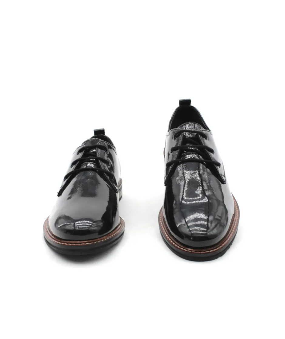 Élégant à regarder et doté d’un confort qui convaincra les femmes particulièrement exigeantes : la chaussure à lacets Kent 12-11202-11 vernis noir de la maison ara. Ce modèle, avec un cuir fin et un laçage discret, fait de cette chaussure légère et élégante fait quelque chose de très particulier. Le point fort absolu en matière de confort est la fonction Highsoft, une combinaison d’un dessus souple et d’une semelle avec un insert spécial en mousse au niveau de la plante du pied. Elle s’adapte parfaitement au pied et lui offre soutien et flexibilité grâce à l’accueil en douceur de la voûte plantaire. Le petit talon bloc résistant à l’écrasement dans une optique de couche de bois ainsi que la forme légèrement pointue allongent la jambe de manière raffinée. Avec sa largeur F, cette chaussure à lacets convient particulièrement aux femmes ayant un pied fin. Cette chaussure élégante avec sa couture décorative s’accorde parfaitement avec de nombreuses tenues et fait battre le cœur des femmes. Ce modèle ne dispose pas d’une semelle amovible.