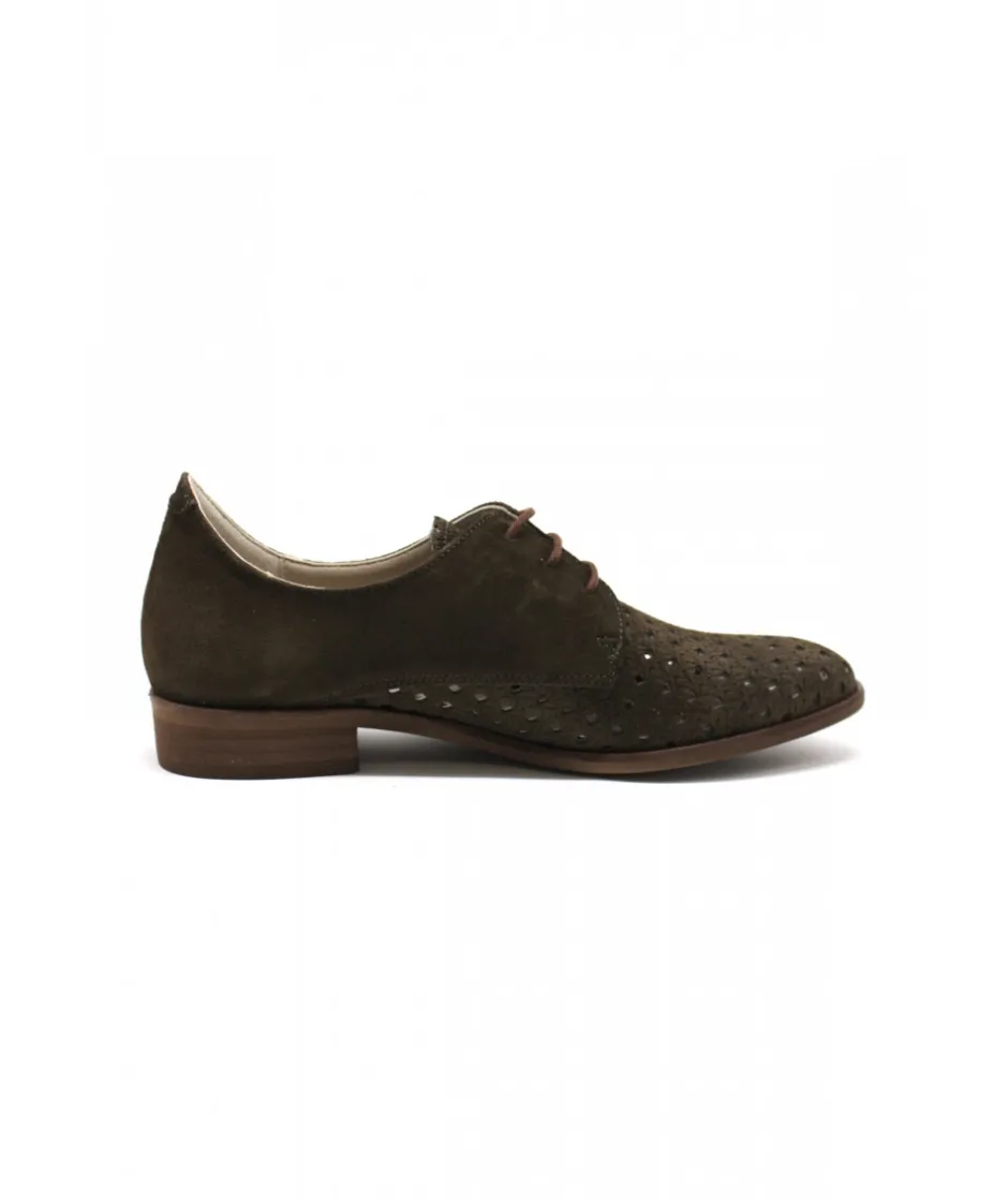 Joli derbie pour femme en cuir velours kaki et bleu marine signé par la maison espagnole DORKING. Le modèle D8747 ASTRID s’équipe d’une semelle en élastomère fine et souple tandis que la semelle intérieur confortable en microfibre On Steam absorbe l’humidité.