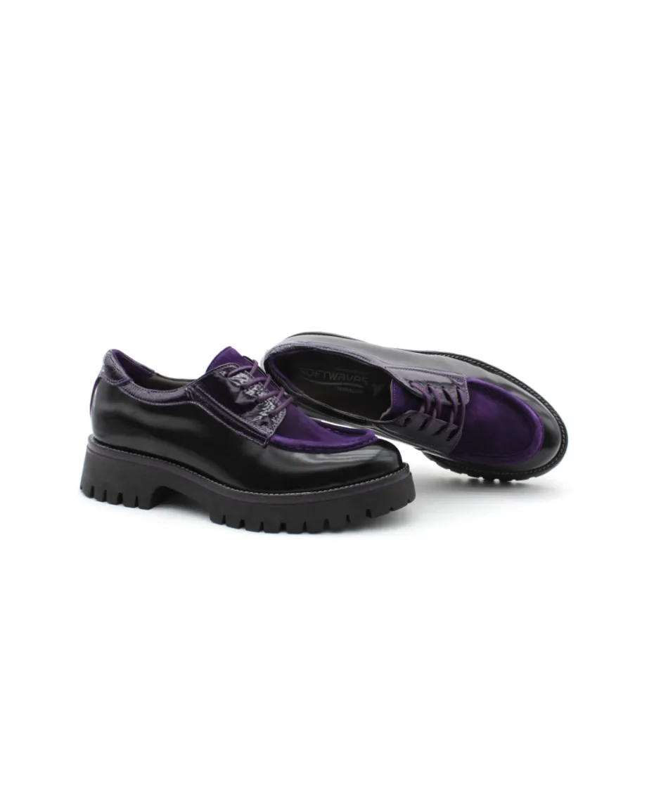 Toujours à la pointe des tendances, la maison portugaise Softwaves nous dévoile sa dernière création : Le derbie 8.36.18/07 VELMA en cuir noir et violet. Chic et élégant, ce modèle mix les styles avec un joli plateau jointé bourrelet, une épaisse semelle crantée qui lui donne un look rock et son indémodable lacet fin pour l’élégance du derbie, chez L’Empreinte on est fan ! Et vous ?