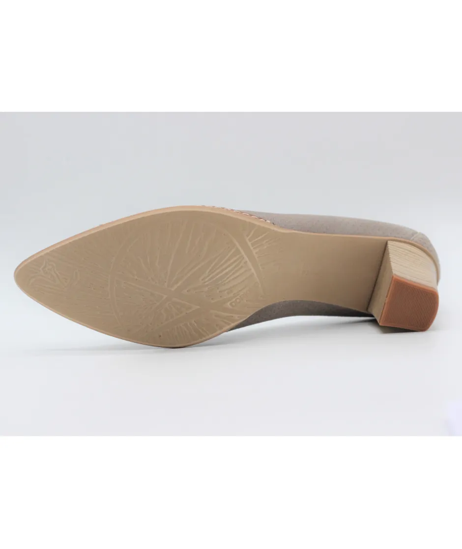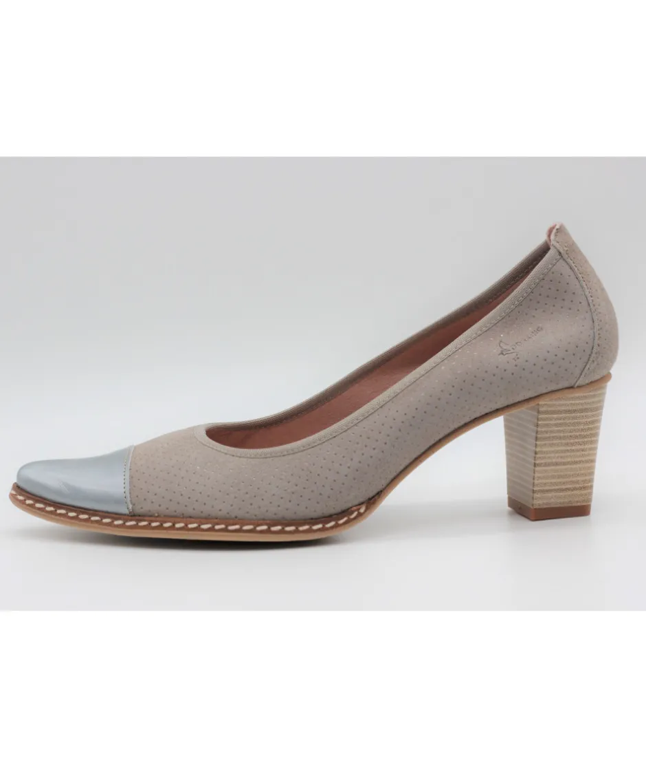 Dessus : Cuir velours perforé et bout métallisé
