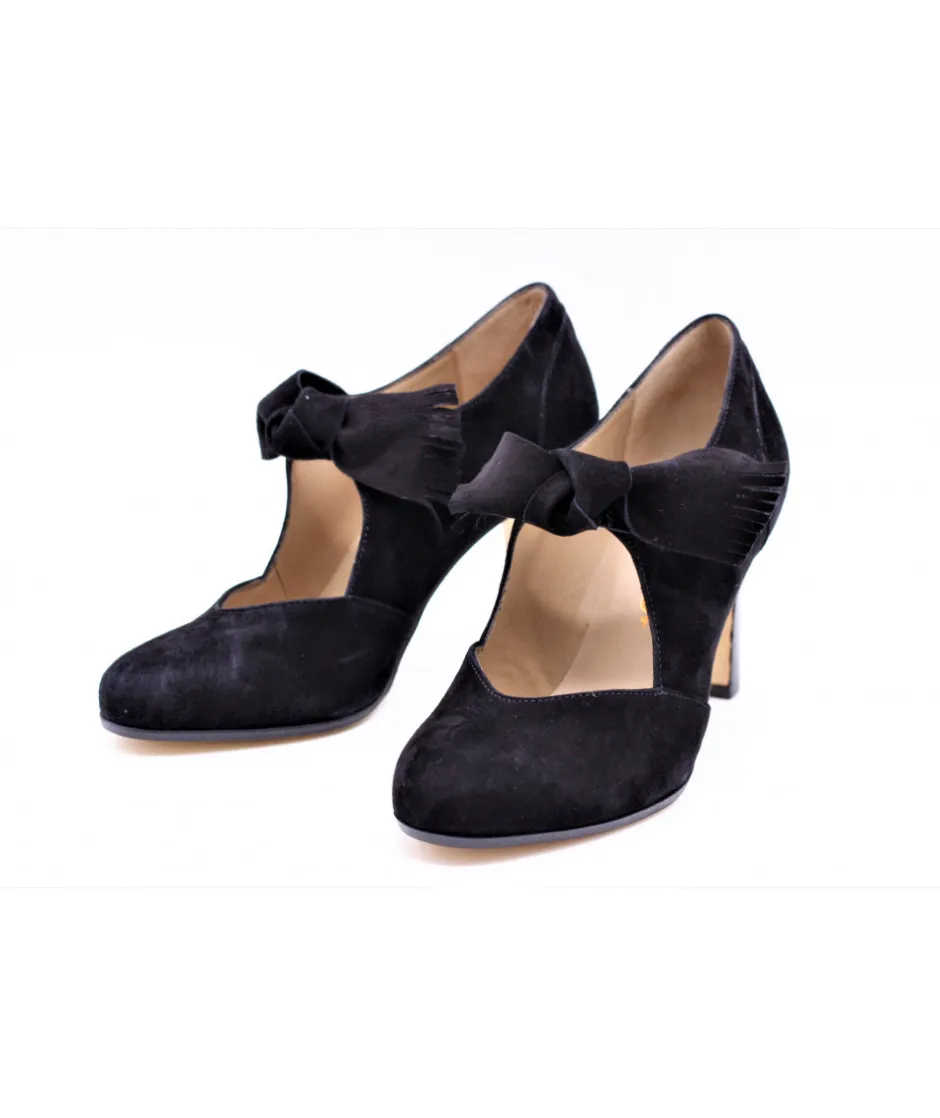 Bride coup de pied fermée par une pression et ornée d’un noeud