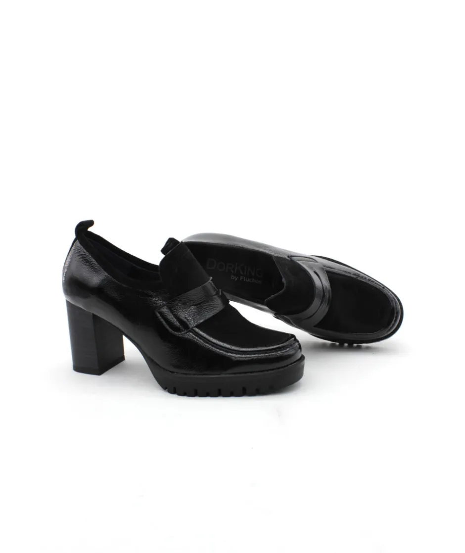 Comme à son habitude Dorking ne manque pas d’idées pour créer de nouvelles formes… Cette année, la marque espagnole nous fait découvrir le mocassin à talon D9165 EVIE en cuir vernis noir. Un cuir de qualité monté sur un talon de 7 cm pour vous faire prendre de la hauteur, une patte décorative et un plateau jointé bourrelet ultra tendance, voici la recette d’une chaussure réussie. Confortable et féminine, il ne manque plus qu’elle dans votre dressing…