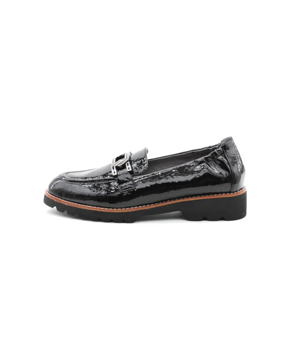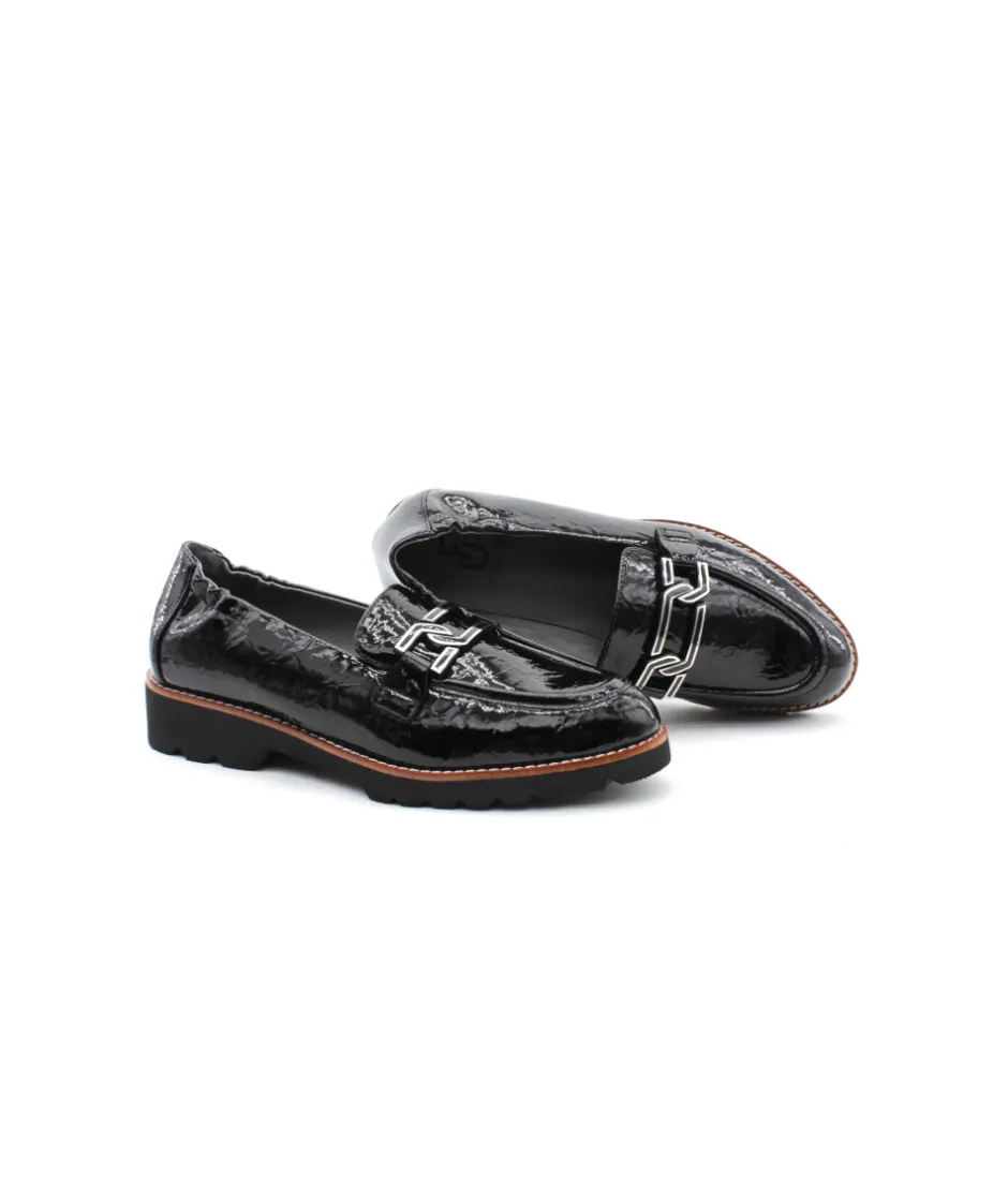 Nouvelle création de la maison française Fugitive avec ce mocassin en cuir vernis noir CYCLOUN. Un look moderne et féminin grâce à sa semelle en gomme légère, son cuir vernis et sa barrette. Énorme tendance, le mocassin se fait une place de choix dans le shoesing des femmes ces dernières années. Chic et raffiné, comme vous, ces chaussures s’associeront facilement à vos robes, jupes, pantalons à pinces…