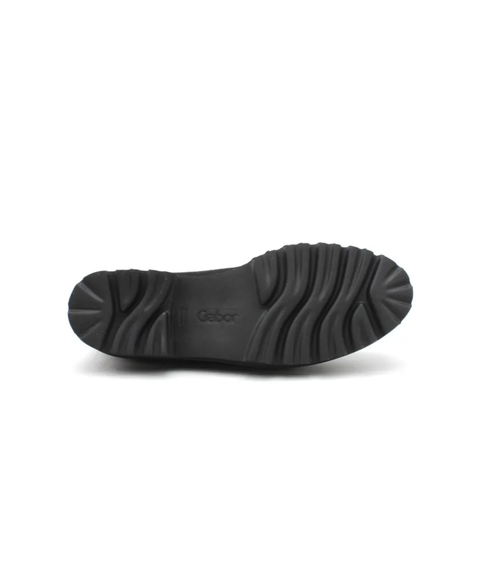 À la recherche d’un mocassin atypique, une couleur indémodable qui pourra facilement s’associer à vos tenues ? Ne cherchez plus… Voici le modèle 55.240.17 en cuir velours noir de la maison allemande GABOR. Un mocassin en cuir confortable, assis sur une semelle en gomme de 3 cm pour un amorti optimal. Féminine avec son bijou tendance, cette chaussure vous fera craquer tous les matins…