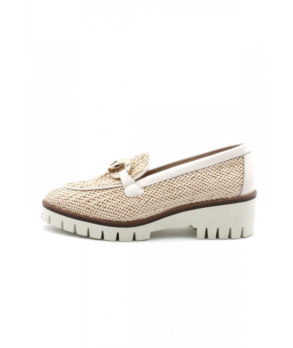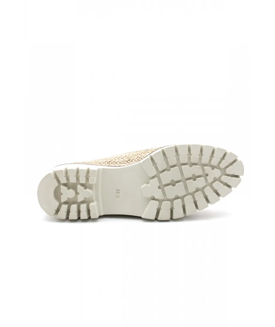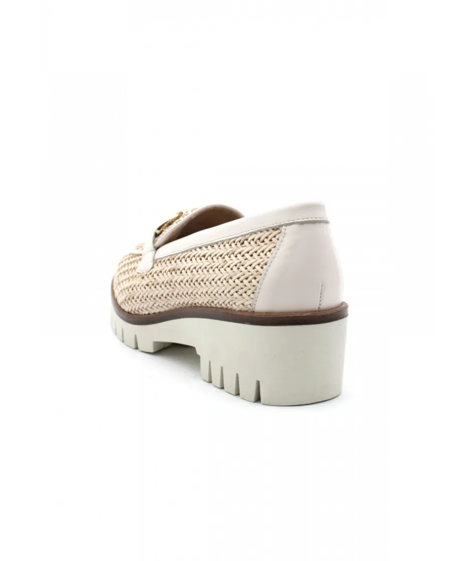 Magnifique mocassin en cuir tressé beige et gris. Voici le modèle 7203 de la marque espagnole JHAY qui fait son entrée chez L’Empreinte Chaussures cette saison. Sur une semelle épaisse crantée, cette chaussure pour femme allie l’élégance du mocassin au style branché de la semelle basket !
