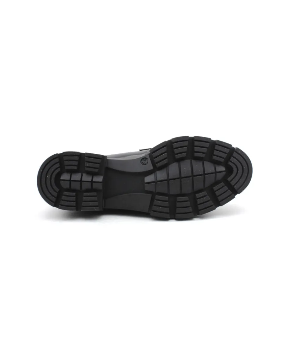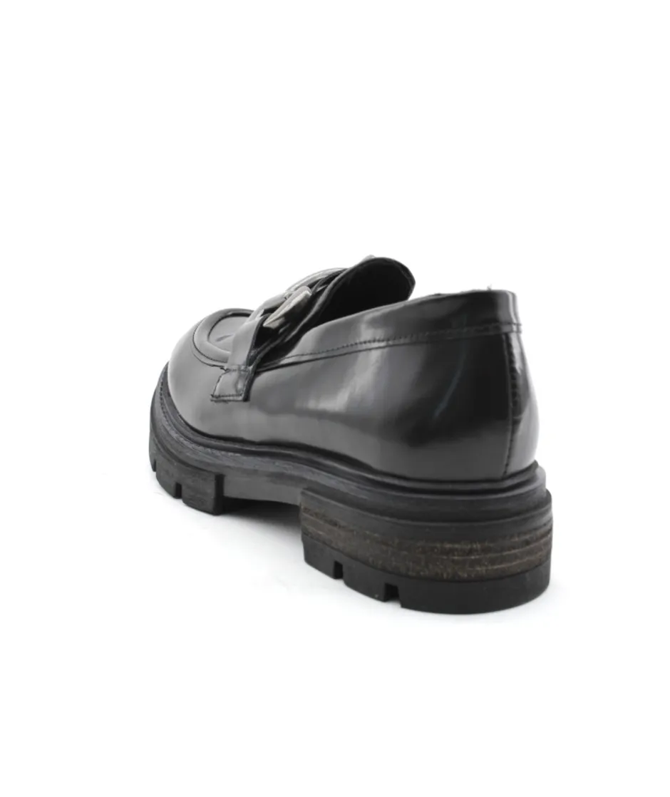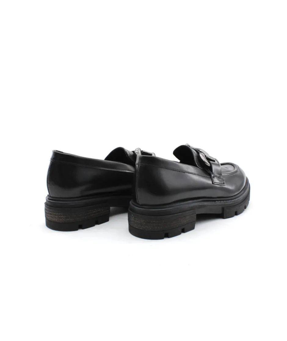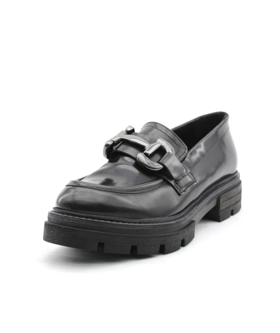 Bonne nouvelle ! Mjus nous dévoile sa nouvelle création, un mocassin plein de charme avec une semelle imposante et un plateau jointé bourrelet au style rétro. Le modèle P31103 en cuir noir ne manque pas de caractère pour attaquer les journées hivernales et vous promet un confort à toutes épreuves grâce à sa semelle légère. Sa barrette argentée lui offre un look chic qui s’accordera avec vos tenues formelles et de tout les jours.