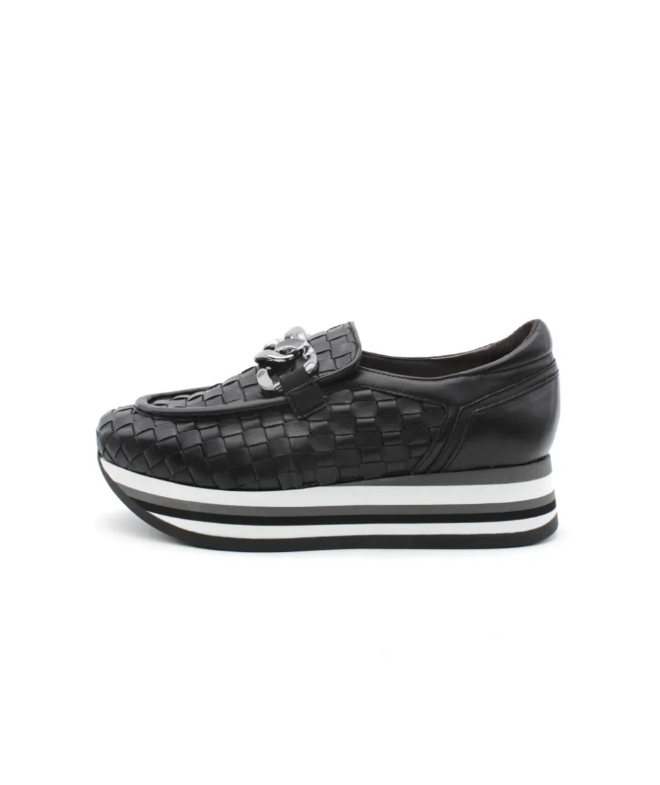 SOFTWAVES propose le mocassin 7.78.59/00 ALANIS en cuir tressé noir pour les femmes soucieuses du bien-être de leurs pieds mais sans négliger pour autant le style. Véritable chaussures confortable et élégante, cette nouveauté associe une semelle de basket sur une forme mocassin, du jamais vu jusqu’à présent ! Ses élastiques situés sur le coup du pied vous offrirons beaucoup de maintien lors de la marche.