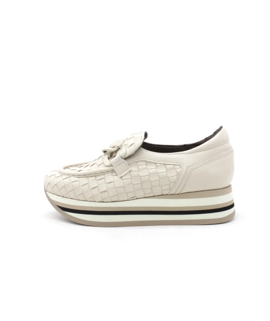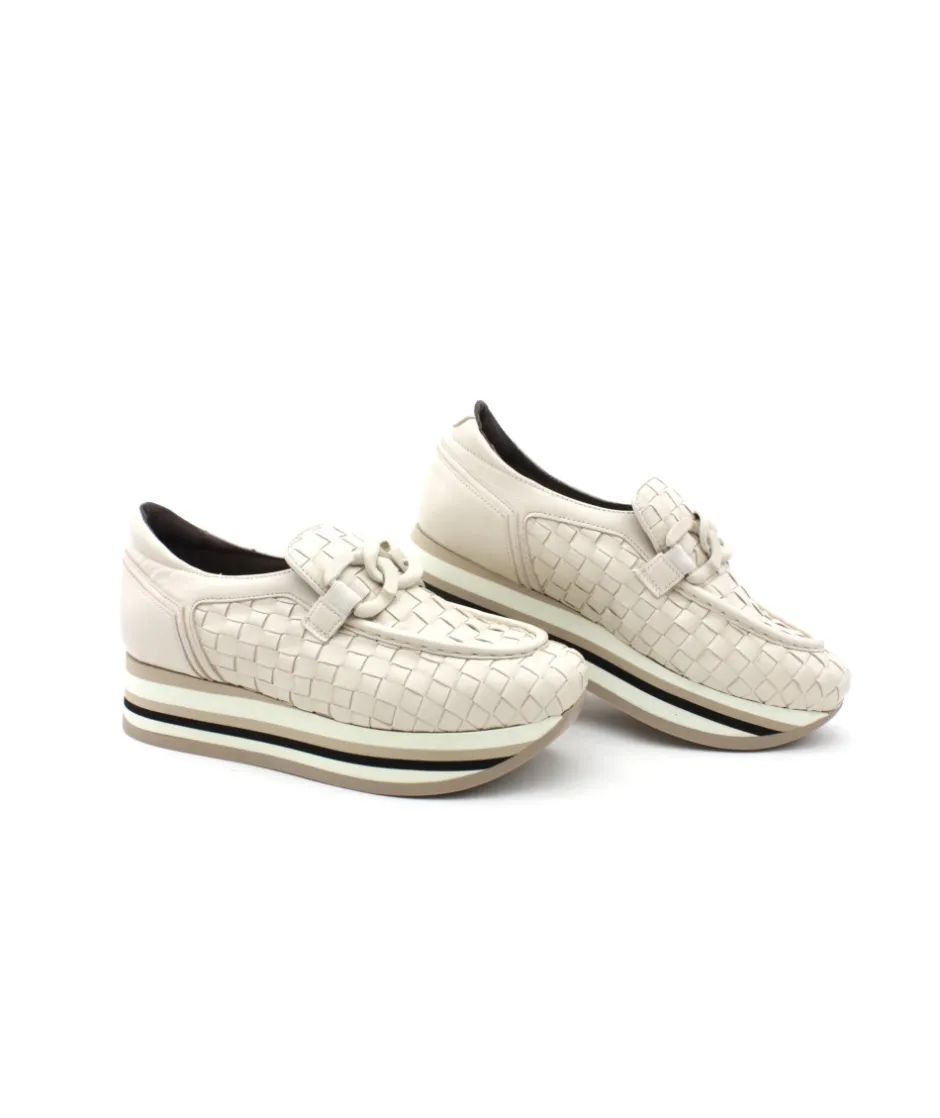 SOFTWAVES propose le mocassin 7.78.59/02 ALANIS en cuir tressé blanc crème pour les femmes soucieuses du bien-être de leurs pieds mais sans négliger pour autant le style. Véritable chaussures confortable et élégante, cette nouveauté associe une semelle de basket sur une forme mocassin, du jamais vu jusqu’à présent ! Ses élastiques situés sur le coup du pied vous offrirons beaucoup de maintien lors de la marche.