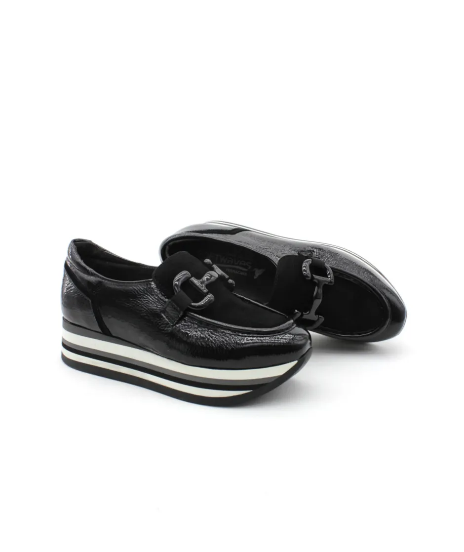SOFTWAVES propose le mocassin 7.78.61/12 ALINA en cuir vernis noir pour les femmes soucieuses du bien-être de leurs pieds mais sans négliger pour autant le style. Véritable chaussures confortable et élégante, cette nouveauté associe une semelle de basket sur une forme mocassin, du jamais vu jusqu’à présent ! Ses élastiques situés sur le coup du pied vous offrirons beaucoup de maintien lors de la marche.