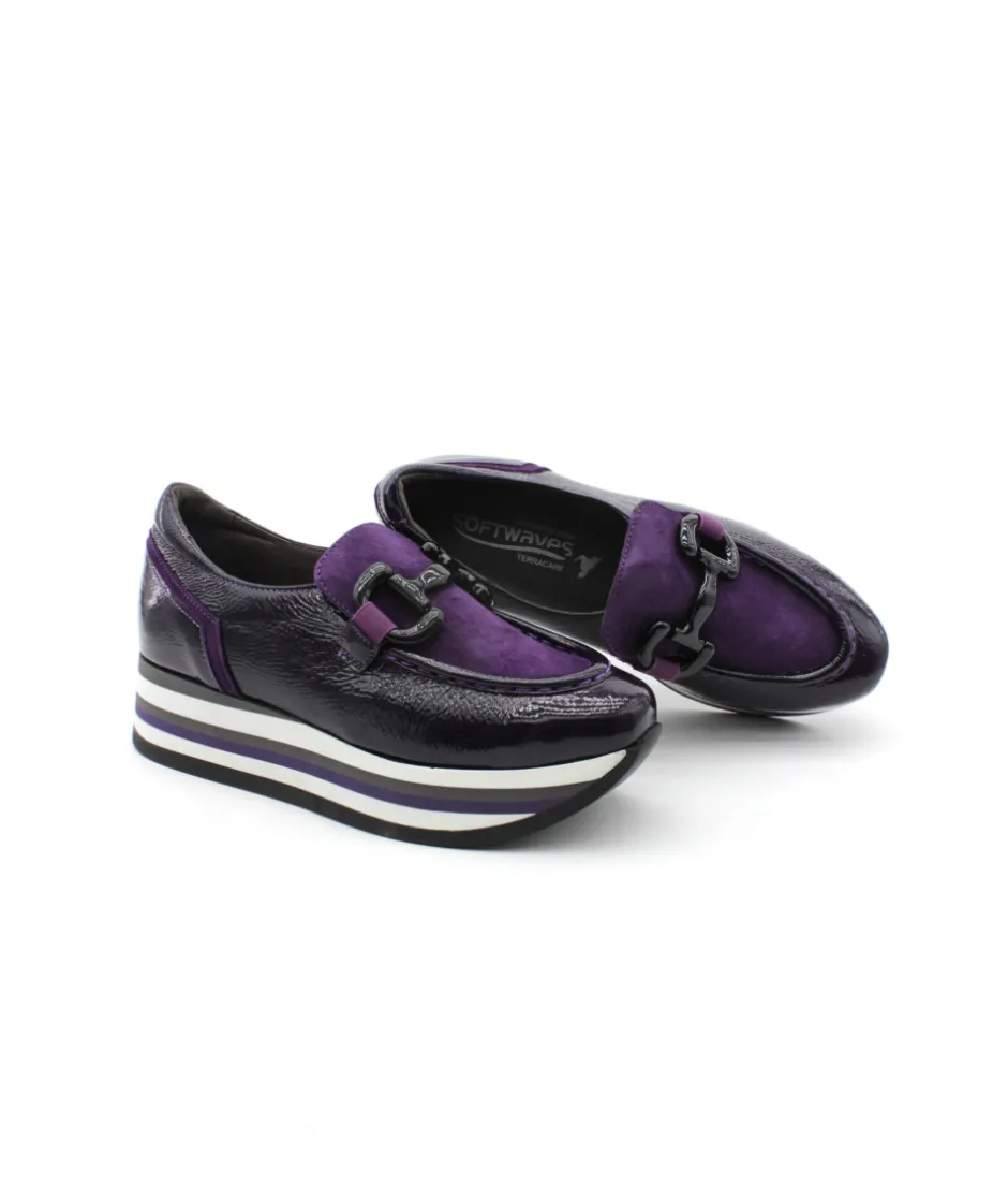 SOFTWAVES propose le mocassin 7.78.61/15 en cuir vernis violet pour les femmes soucieuses du bien-être de leurs pieds mais sans négliger pour autant le style. Véritable chaussures confortable et élégante, cette nouveauté associe une semelle de basket sur une forme mocassin, du jamais vu jusqu’à présent ! Ses élastiques situés sur le coup du pied vous offrirons beaucoup de maintien lors de la marche.