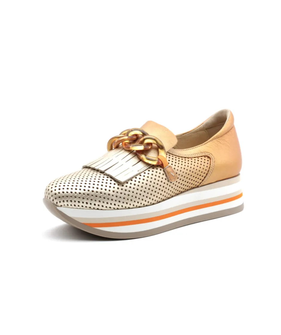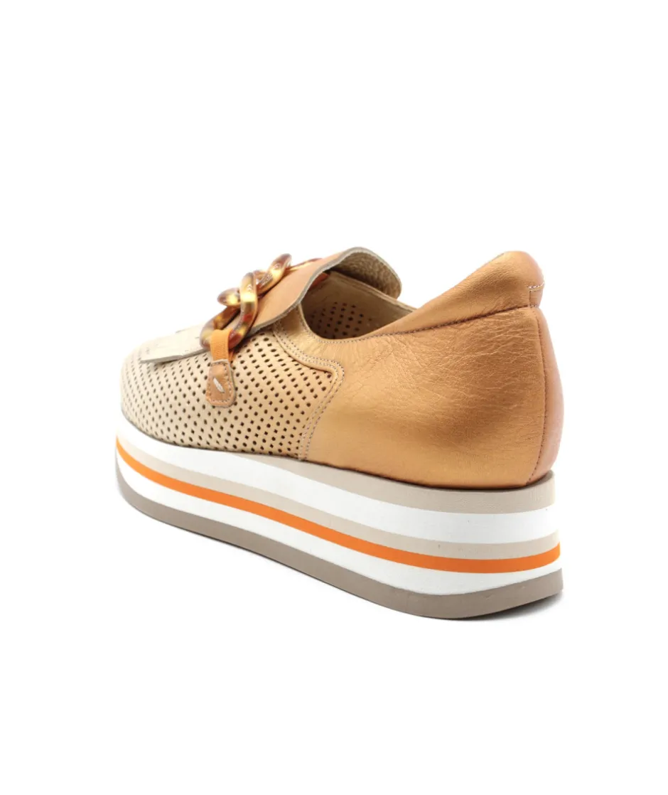 SOFTWAVES propose le mocassin 7.78.67/006 CYNTHIA en cuir avec une couleur tie and dye platine et orange pour les femmes soucieuses du bien-être de leurs pieds mais sans négliger pour autant le style. Véritable chaussures confortable et élégante, cette nouveauté associe une semelle de basket sur une forme mocassin, du jamais vu jusqu’à présent ! Ses élastiques situés sur le coup du pied vous offrirons beaucoup de maintien lors de la marche.