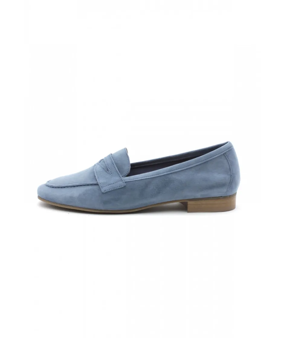 WE DO, une nouvelle marque chez L’Empreinte Chaussures, propose cette saison un mocassin très féminin en cuir velours bleu jeans, bleu marine, bleu électrique et vert, décoré d’un empiècement en cuir chic sur le dessus du plateau.