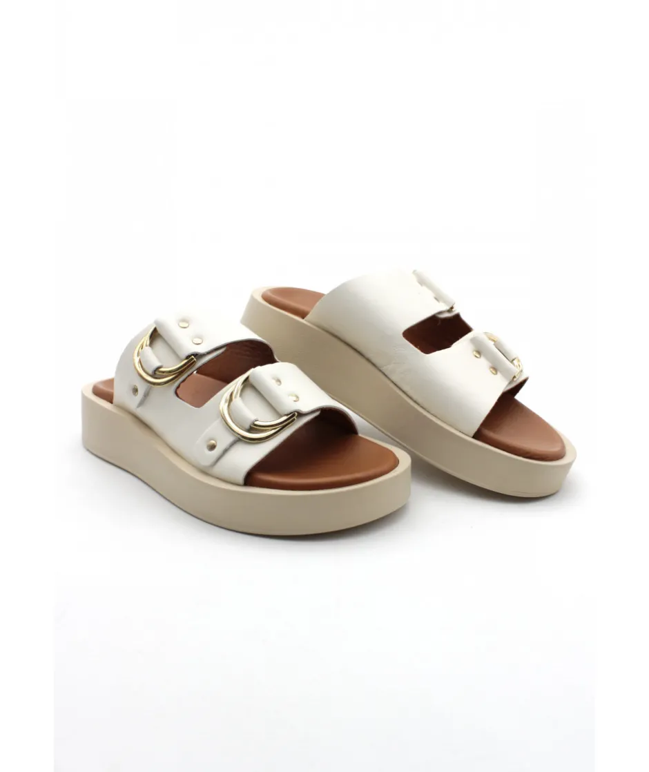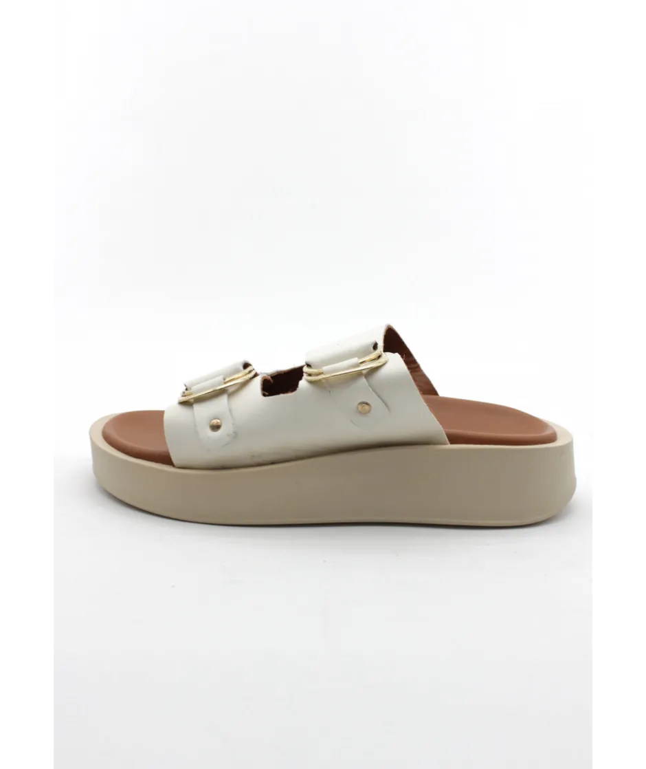Superbe mule, féminine et estivale, ce nu-pieds pour femme est l’accessoire idéale pour l’été. Le modèle JANINE de REQINS embarque avec lui un cuir blanc et noir pour un look chic et décontracté.