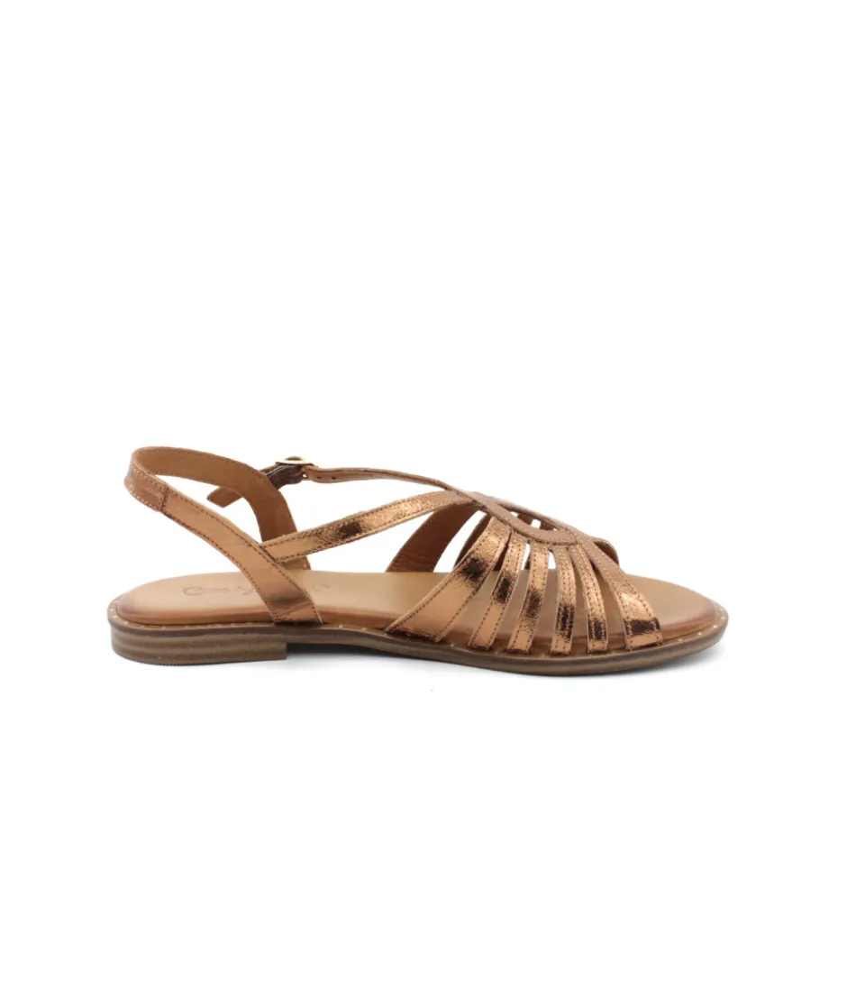 Chic et originale, cette sandale s’habille d’un magnifique cuir couleur cuivre. La création MILLERY V2383D de la maison française Coco & Abricot ne manque pas d’originalité grâce à son joli jeu de bride remontant sur le coup de pied. Sa semelle fine en cuir moussé quant-à elle vous apportera beaucoup de souplesse et de confort pour pouvoir vous suivre partout, tous les jours.