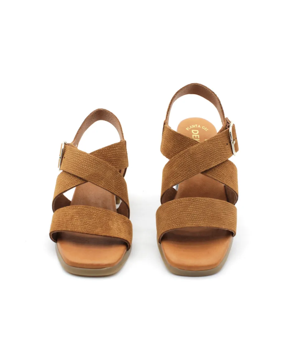 Très belle sandale à découvrir absolument sur un talon décroché et un cuir couleur whisky ou noir. Signature DEKAYE, le nu-pieds pour femme 1970-F est l’élégance incarné avec un talon version bois et des brides croisées pour une allure élégante. Ce cuir agréable à porter ainsi que sa semelle moussée offre un confort incomparable tandis que le fermoir réglable maintiendra votre pied dans la sandale. Pas de doute c’est le modèle qu’il vous faut pour compléter votre shoesing pour cet été !
