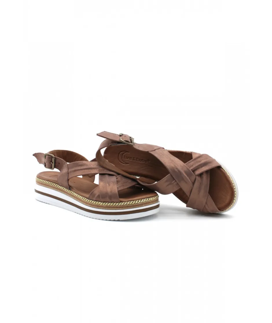 À la recherche d’une jolie sandale pour l’été ? AMBLE, une création LUNE ET L’AUTRE est le nu-pieds par excellence avec son cuir couleur Platine ou Marron.
