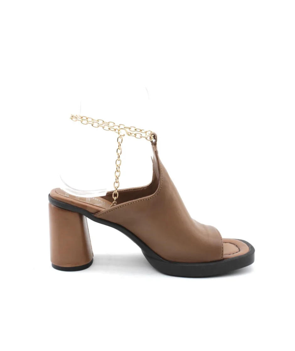 Mjus vous présente sa nouvelle sandale à talon version noir ou marron. Le modèle T26004 se monte sur un talon de 8 cm et un cuir haut de gamme, très confortable pour votre pied. On aime son élégance et sa féminité accentué par sa chaine dorée en tour de cheville. Un modèle unique qui n’attends plus que vous.