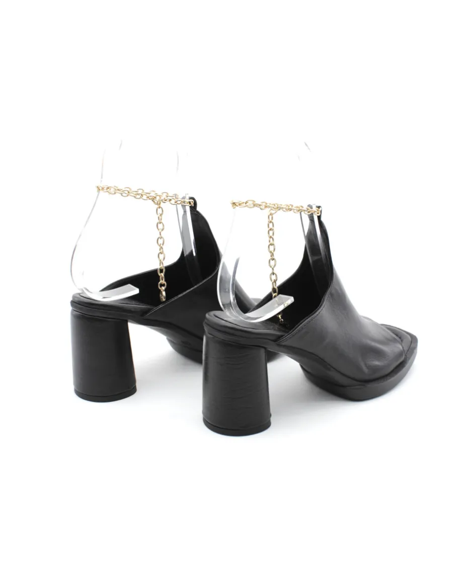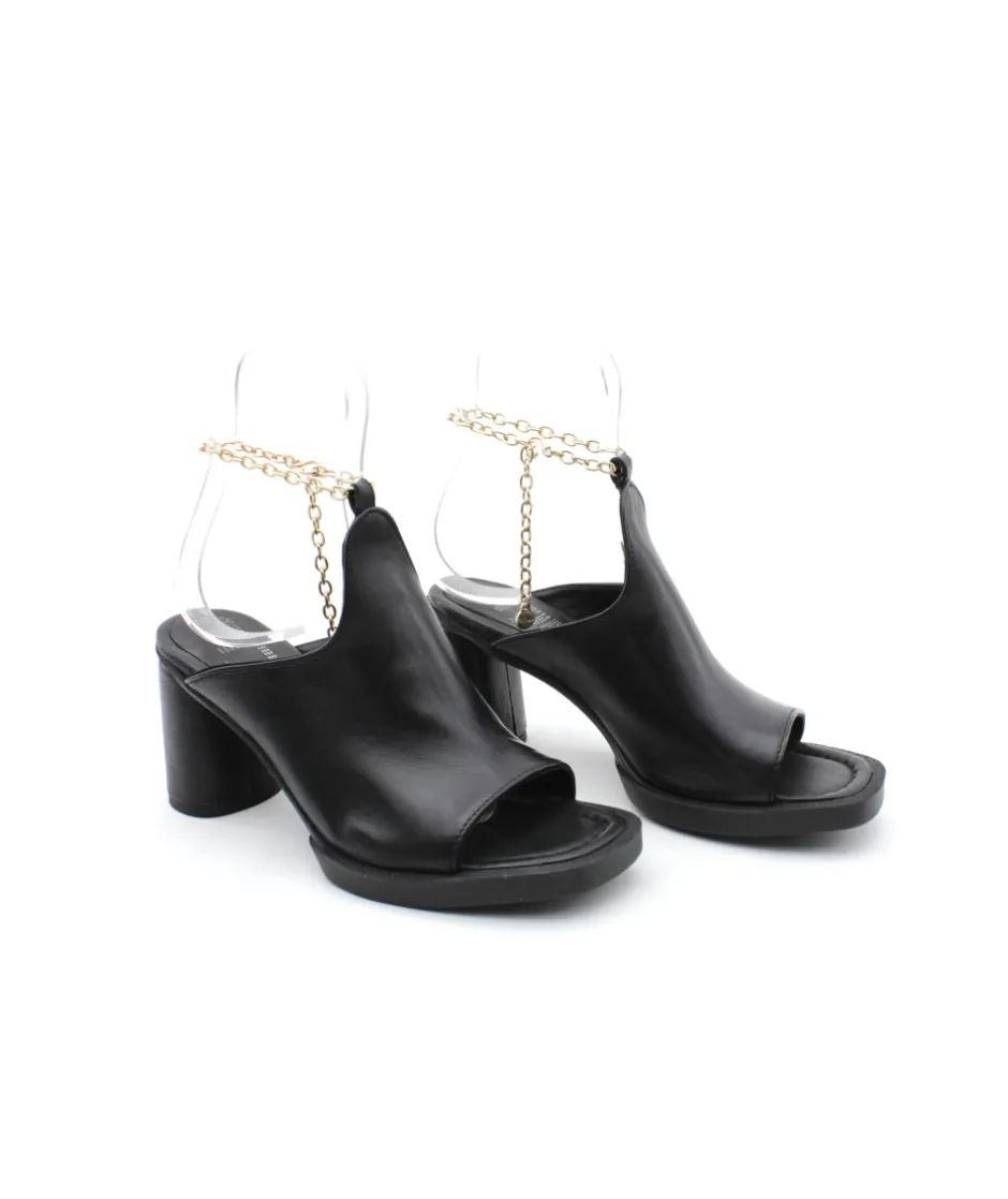 Mjus vous présente sa nouvelle sandale à talon version noir ou marron. Le modèle T26004 se monte sur un talon de 8 cm et un cuir haut de gamme, très confortable pour votre pied. On aime son élégance et sa féminité accentué par sa chaine dorée en tour de cheville. Un modèle unique qui n’attends plus que vous.