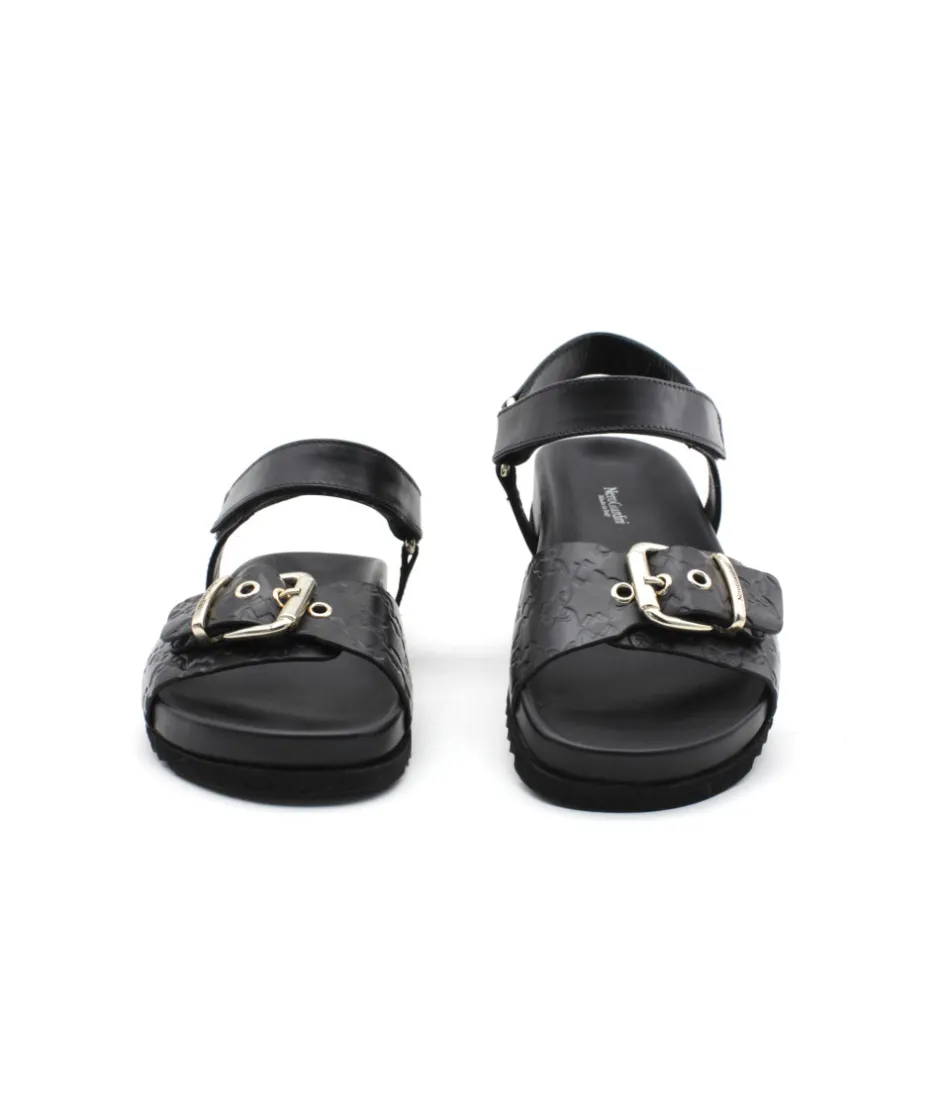 Modèle ultra-branché de la collection, la création NEROGIARDINI E410501D est le must-have de l’été avec sa semelle légère. Disponible en cuir noir, ces sandales s’habille d’une bride cheville réglable par velcro et d’une bride avant elle même réglable par une boucle doré au rendu féminin. Entièrement doublé en cuir, le bien-être n’est pas mit de côté. Un bonheur à porter pour les modeuses comme vous !