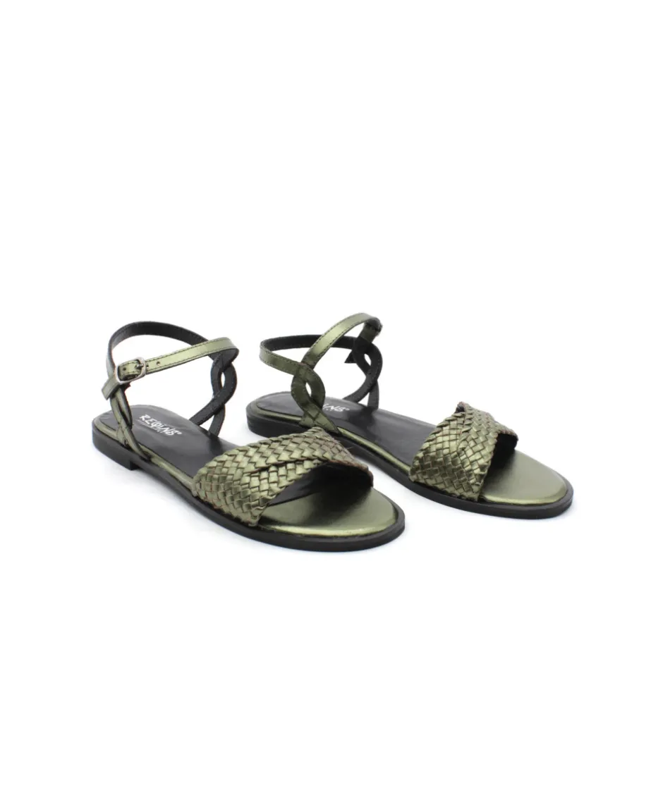Sandales plates confortable, souple et légère ? Ne cherchez plus, REQINS a conçu pour vous le modèle parfait ! Avec sa semelle en gomme, son petit talon, sa bride avant en cuir tressé vert olive et sa bride cheville réglable, cette sandale est le bon compromis pour cet été en alliant confort, amorti, légèreté. On aime les jolies finitions apportées comme les croisements de lanières.