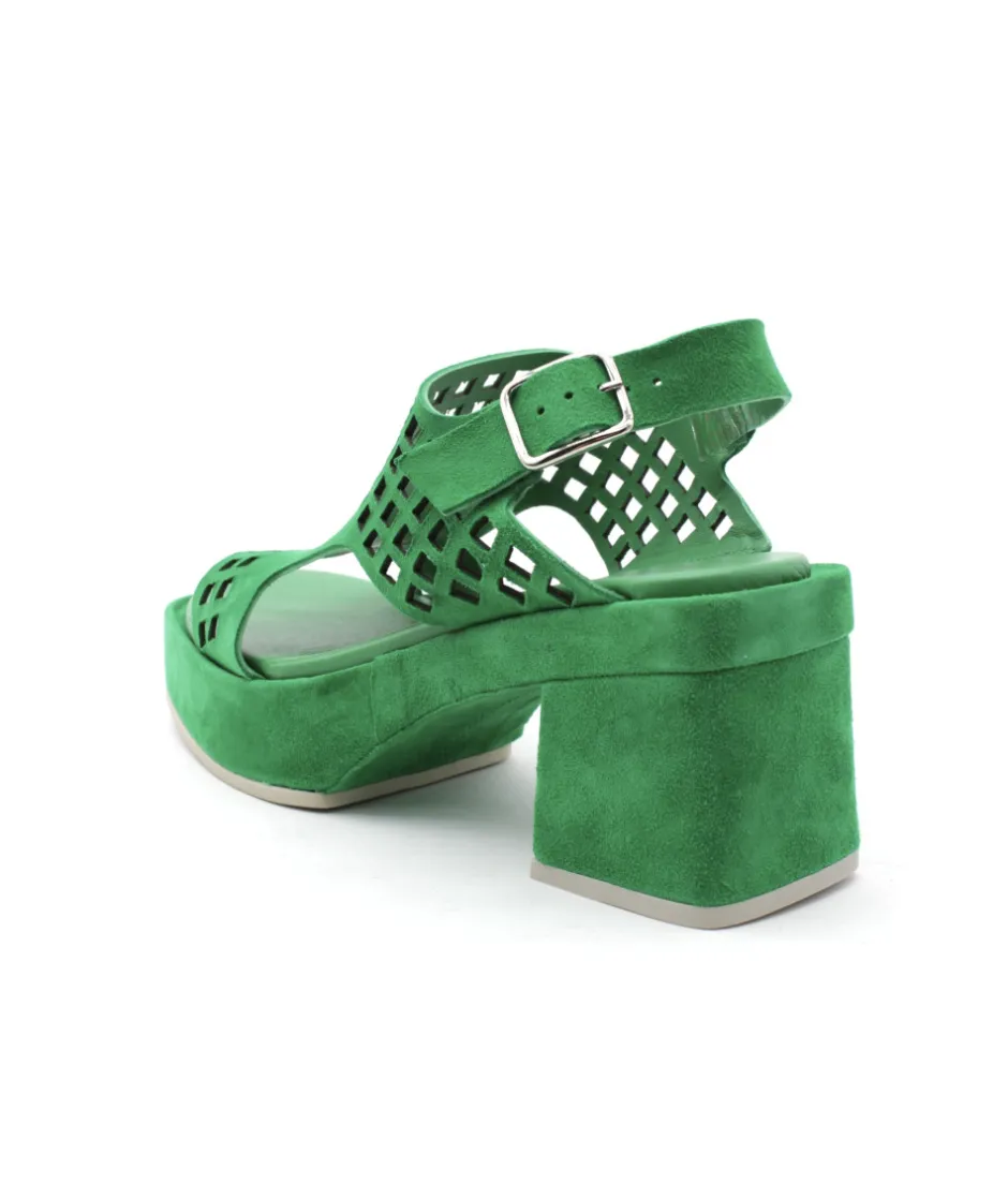 Encore une nouveauté qui casse les codes avec cette création signée Softwaves ! Le modèle 8.77.01/00 RAENA en cuir velours vert est une sandale à talon décroché montée avec une peausserie haut de gamme ajourée qui emboite le pied pour un rendu chic et féminin. Avec son talon large et son plateau avant, la stabilité est assurée tandis que sa bride arrière vous permettra d’ajuster la chaussure à votre pied.